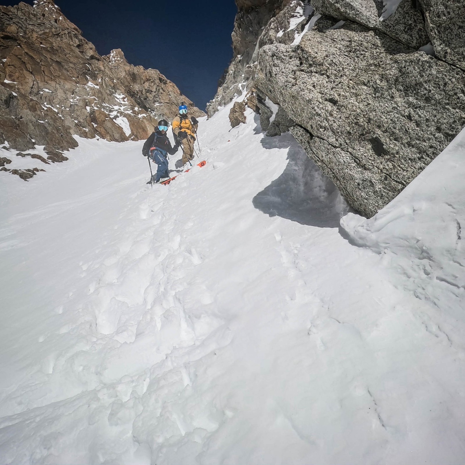 Conditions nivo et activité avalancheuse : Petite coulée sur nous en remontant le couloir due au soleil. Sinon c'était bien stable