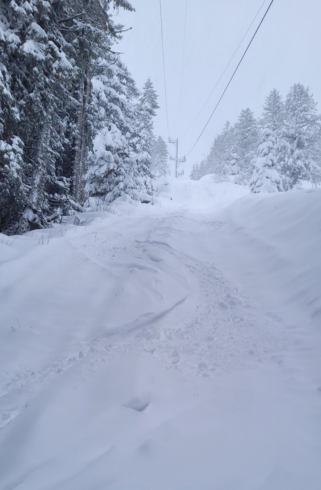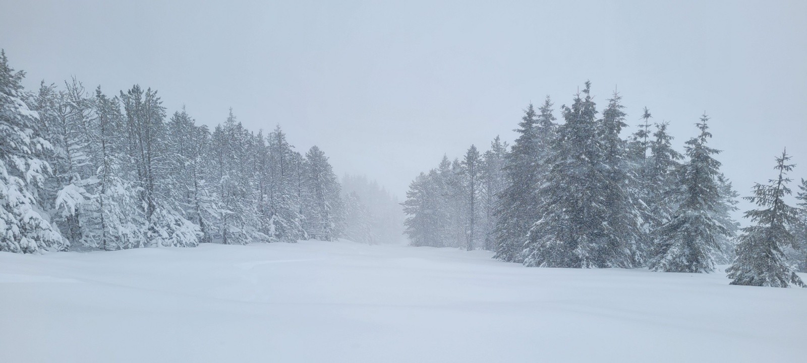 Météo/températures : Chutes de neige continues, de -2° à -5° suivant l'altitude. Vent nord ouest 25/50 km/h. Visibilité moyenne