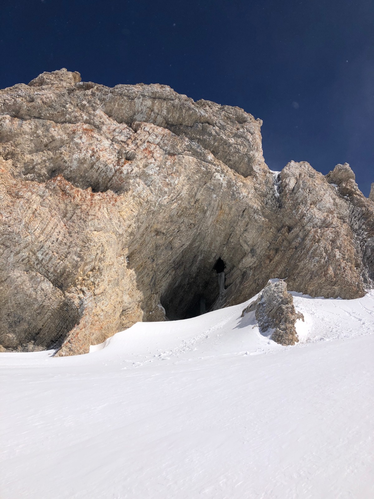 ensuite descente classique par les 2 ressauts, en restant vigilants (neige pas facile) en skiant sous les ancrages