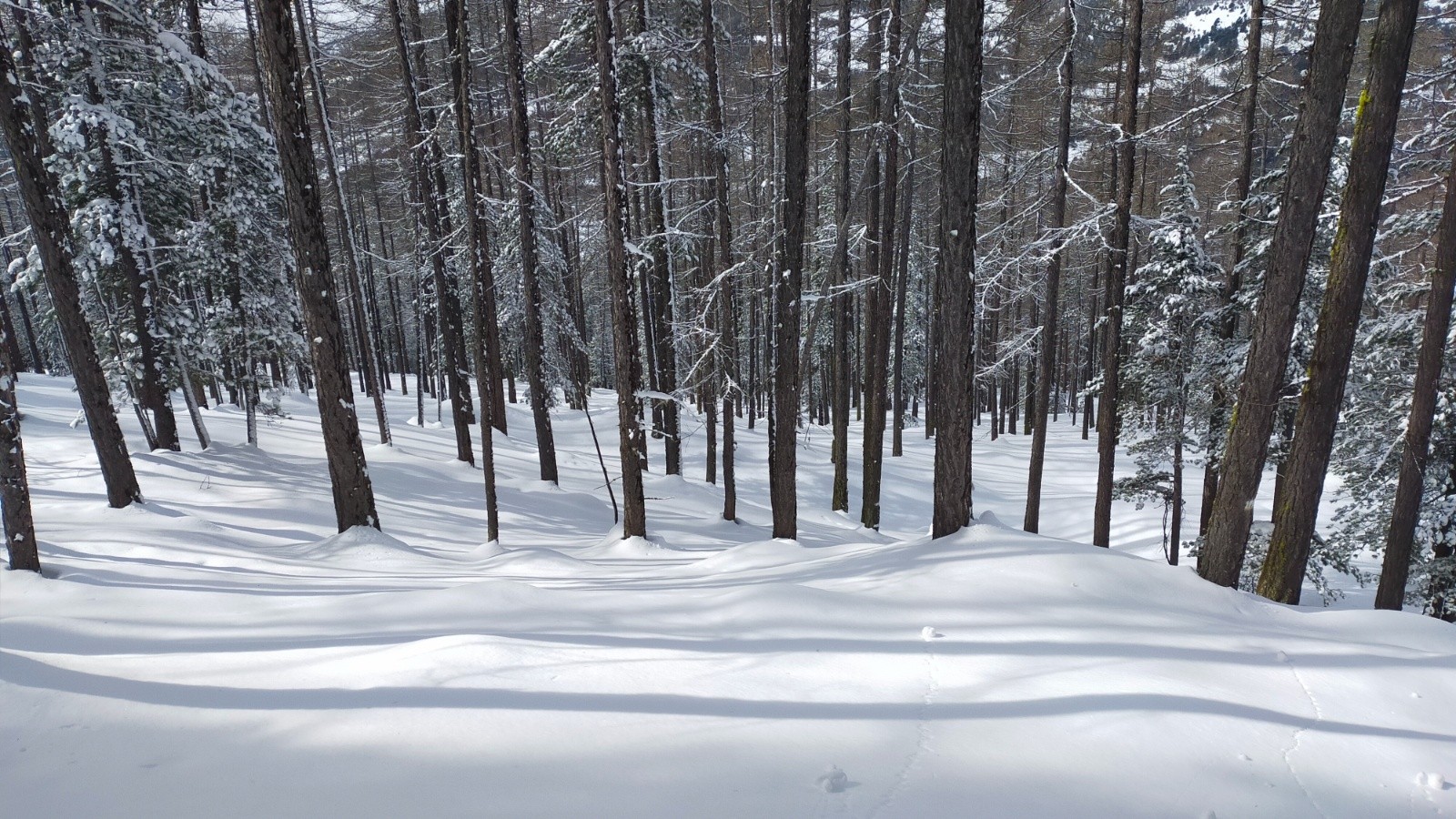 Météo/températures : -1°C au départ sans vent dans la forêt, petite chute neige le matin, puis éclaircie vers midi et pas mal de vent du sud glacial dès que l'on sort de la forêt vers 2350m