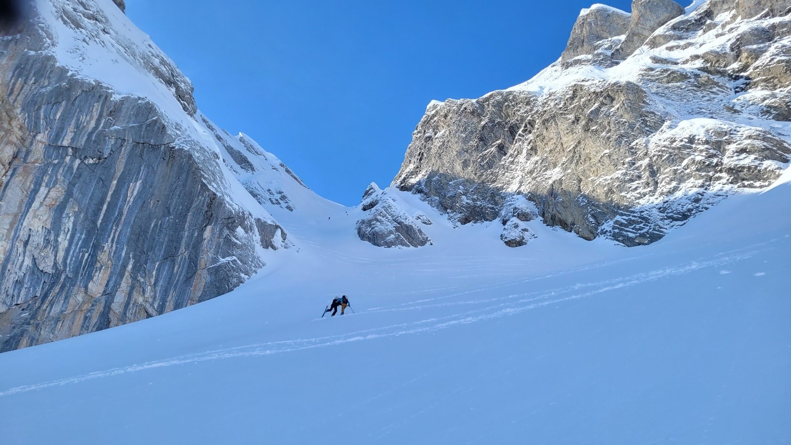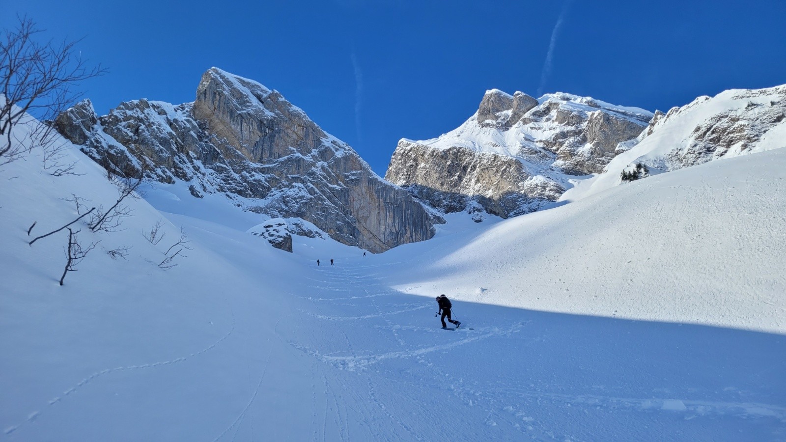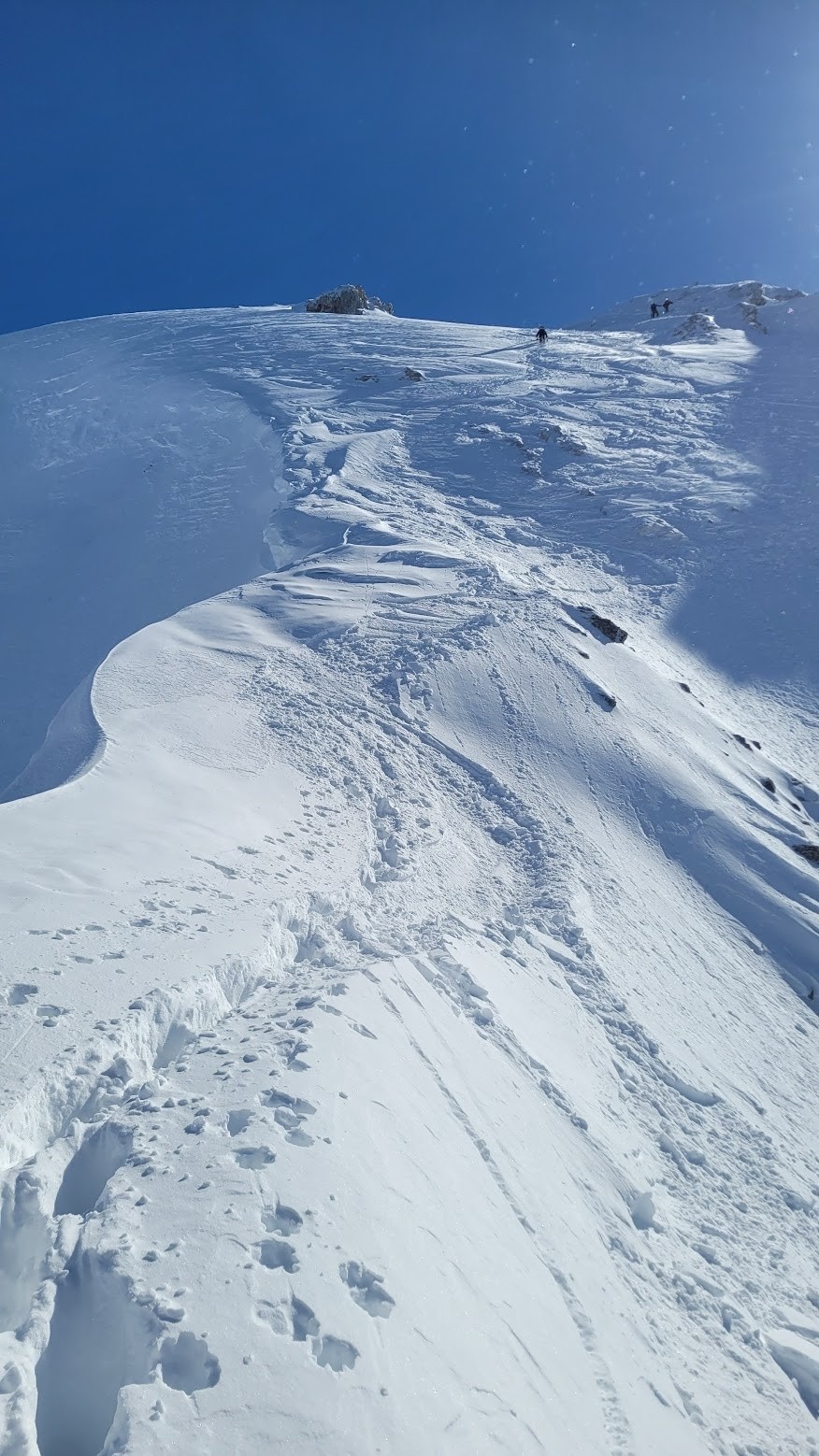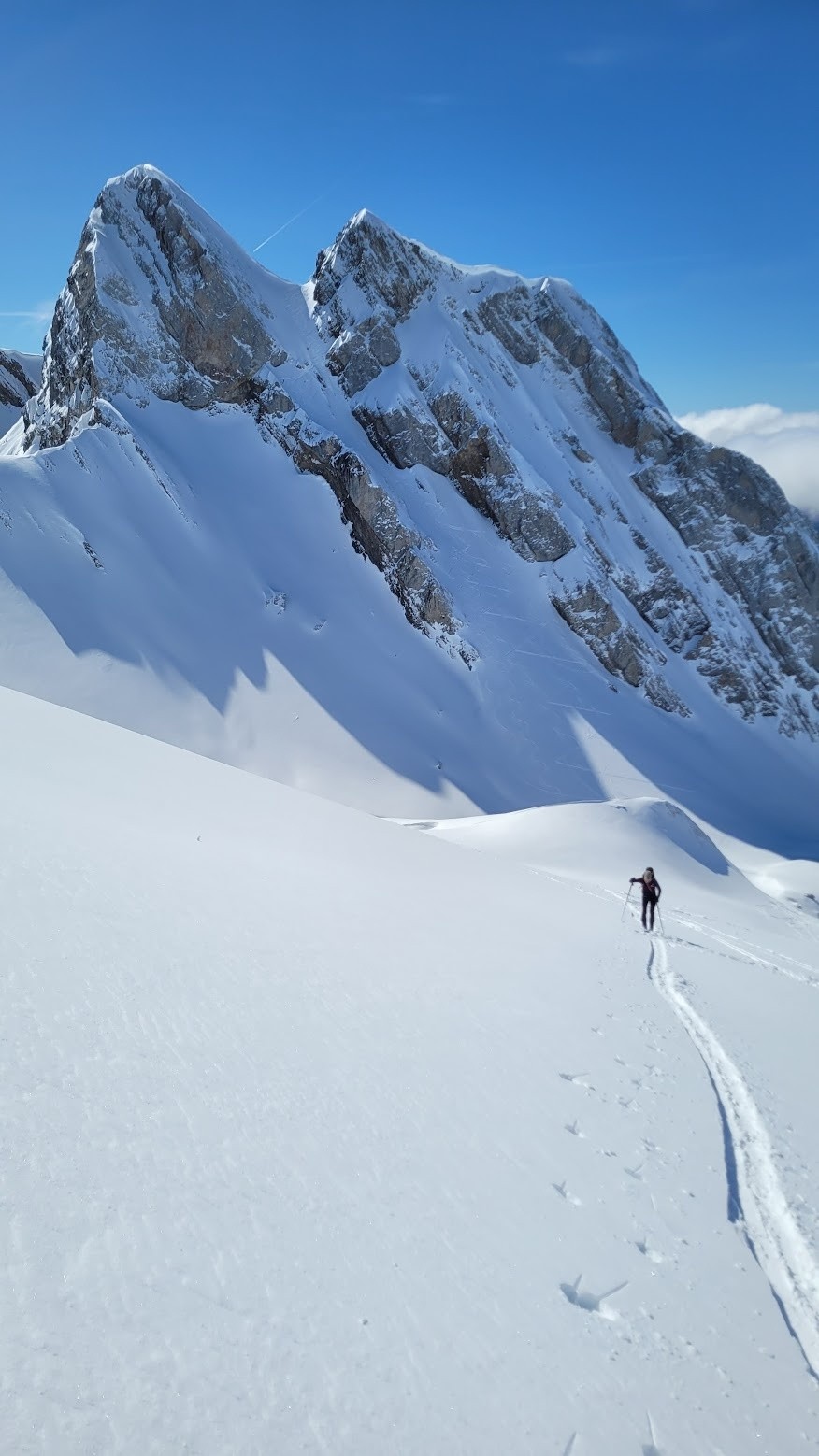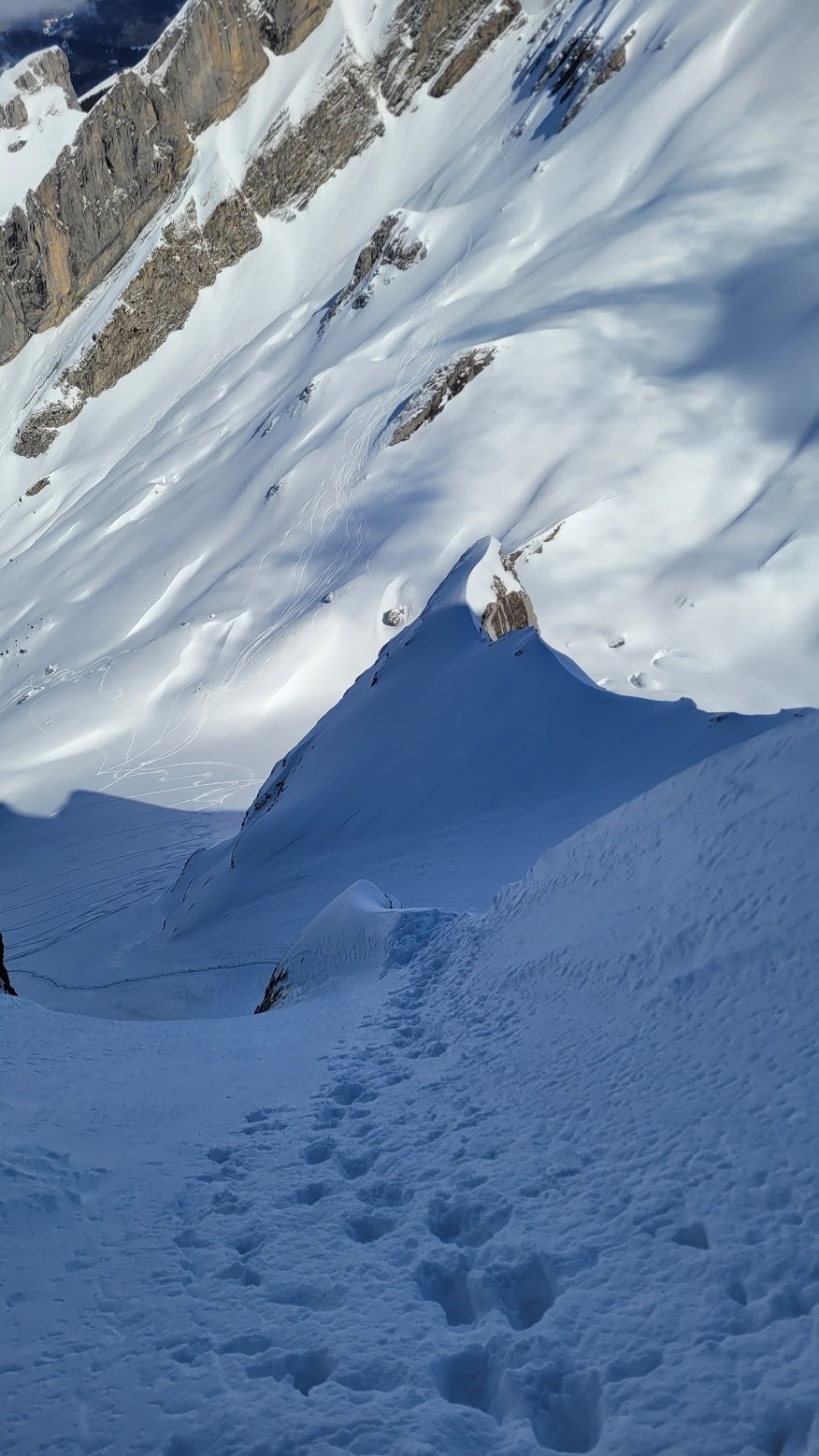 Conditions pour le ski : Excellente neige. 15cm de fraiche sur un fond dur. La partie raide du Combaz était en neige très dure/glace après les 3 premiers passages