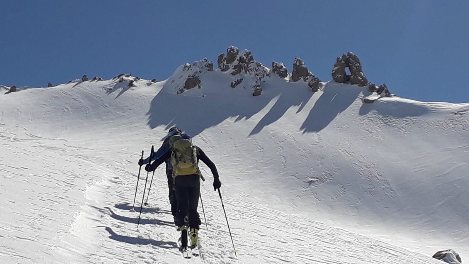 Itinéraire suivi : V.N. en aller-retour mais Bige a choisi de descendre seul par le ravin du Détroit en bonnes conditions et bien rempli, il est joueur.