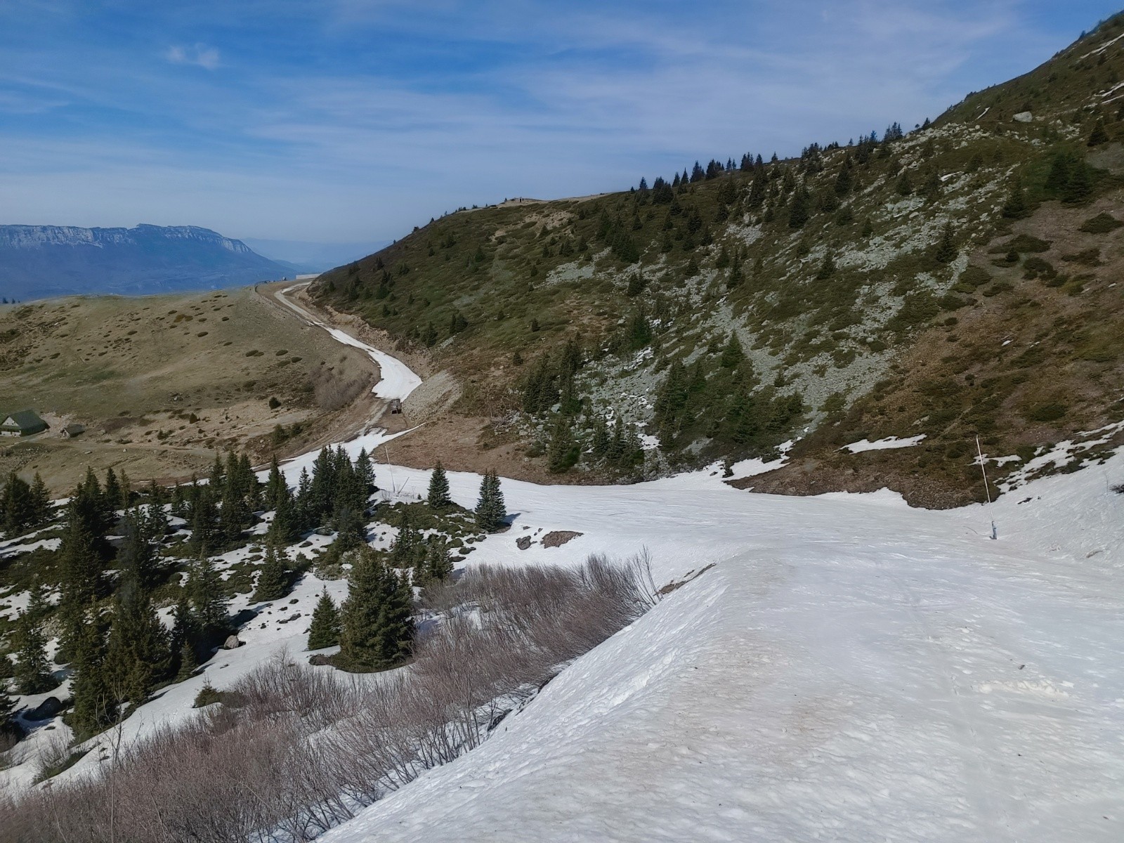 Quelques passages collants selon l'expo, faut pas trop en demander quand même, mais franchement bien skiable, et pas fatiguant en montée, bon c'est pas frais non plus, mais en pleine après-midi avec 21 degré à 17h au départ et le soleil qui tapait vraiment fort, j'étais sceptique en me préparant.