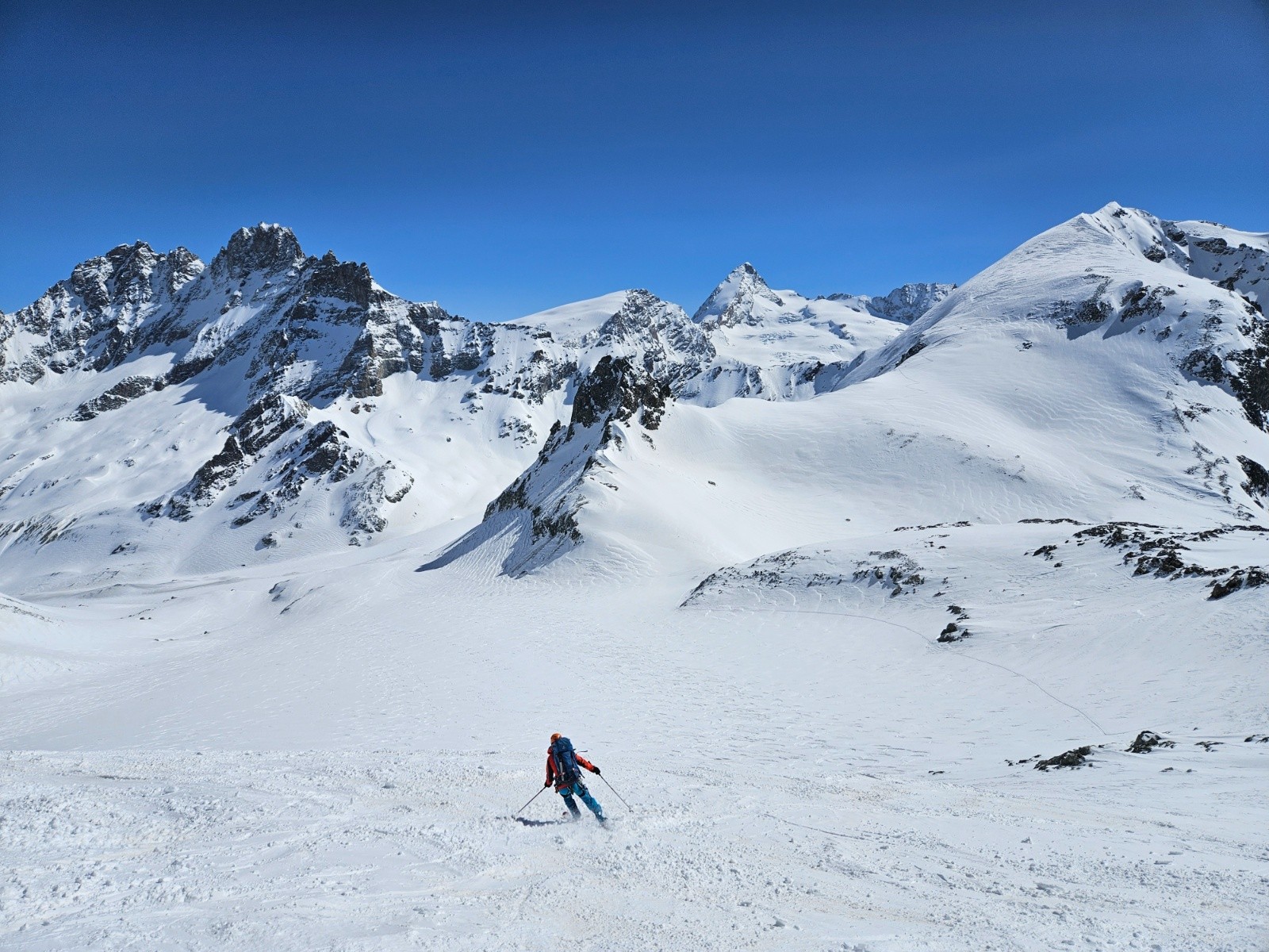 - très bon enneigement en altitude, pas de glace dans les cols/sommets parcourus, les glaciers semblent globalement bien bouchés. Le col du Chardonnet est en très bonne condi (on a qd même tiré un rappel sur la corde fixe en place), ainsi que le col de la Grand-Luy.