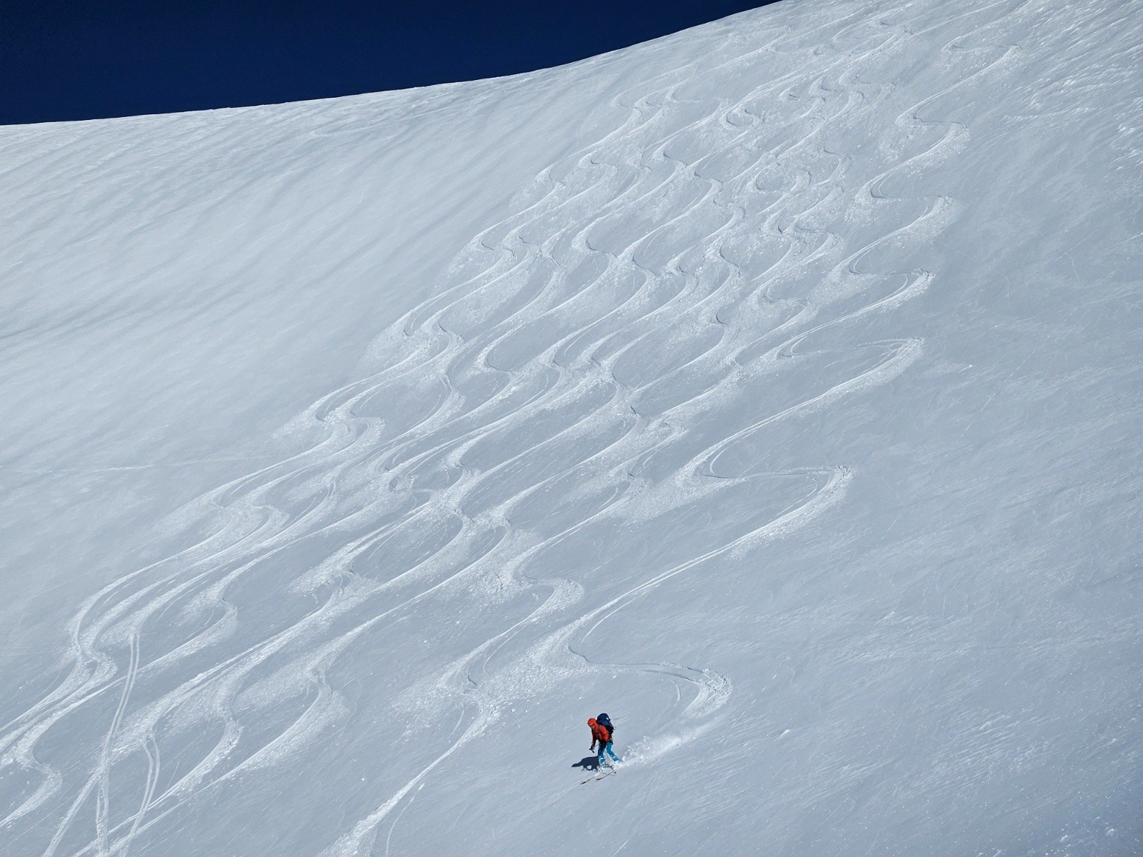- le vent et la hausse des températures en début de raid ont dégradé la qualité du ski : du carton, de la croûté, de la lourde collante, mais aussi quelques très bons passages moquettes dans la descente sur La Fouly. Les chutes du 9 et 10 Avril ont amélioré la qualité du ski sur la fin du raid, avec un peu de poudre au Pigne d'Arolla et dans la descente de la Tête de Valpelline sur Zermatt.