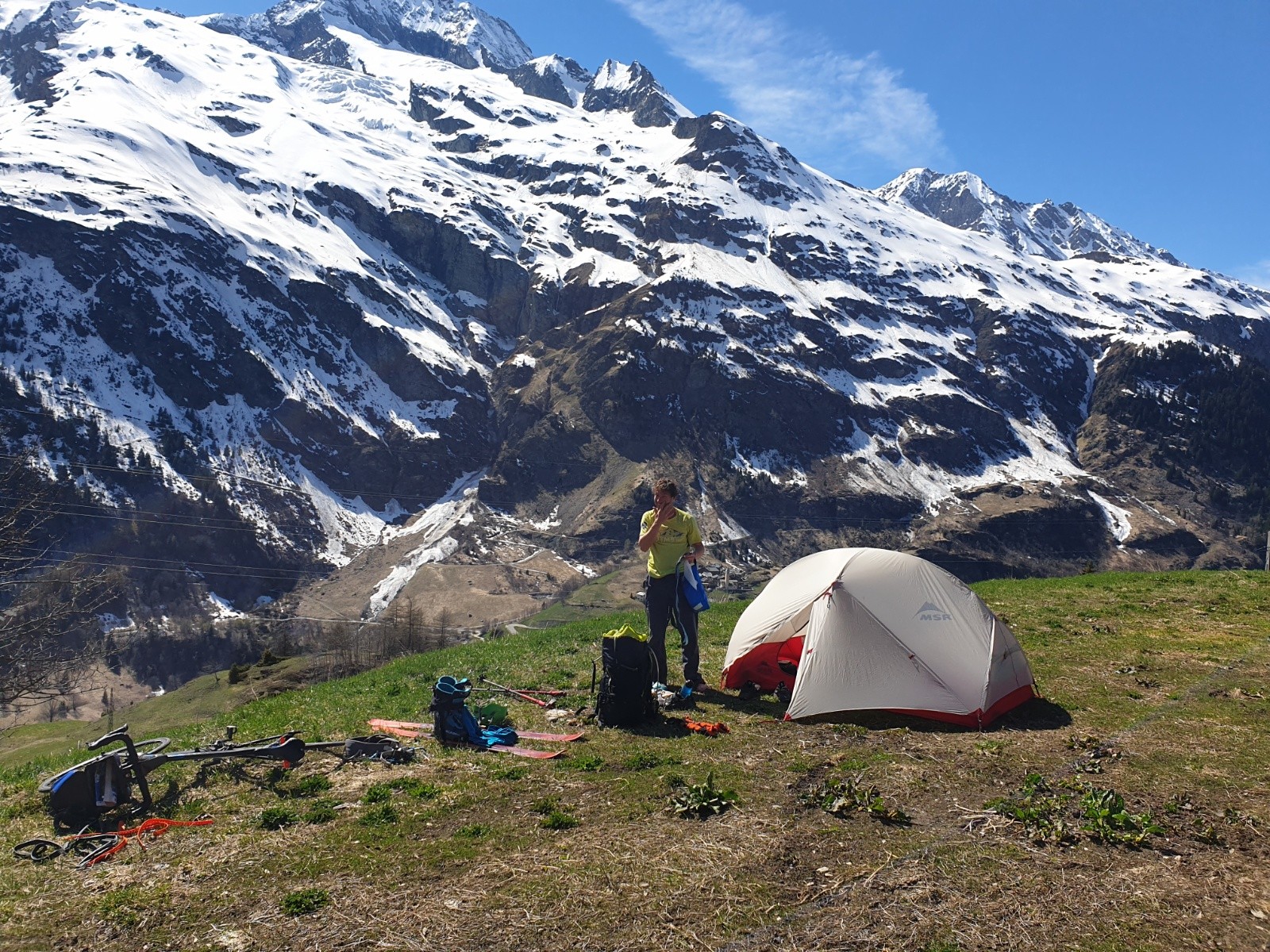 -"Hey, Arnaud, ça te tente une Grande Sassiere en velo-ski? Il faudra dormir en tente car il n'y a pas de refuge"