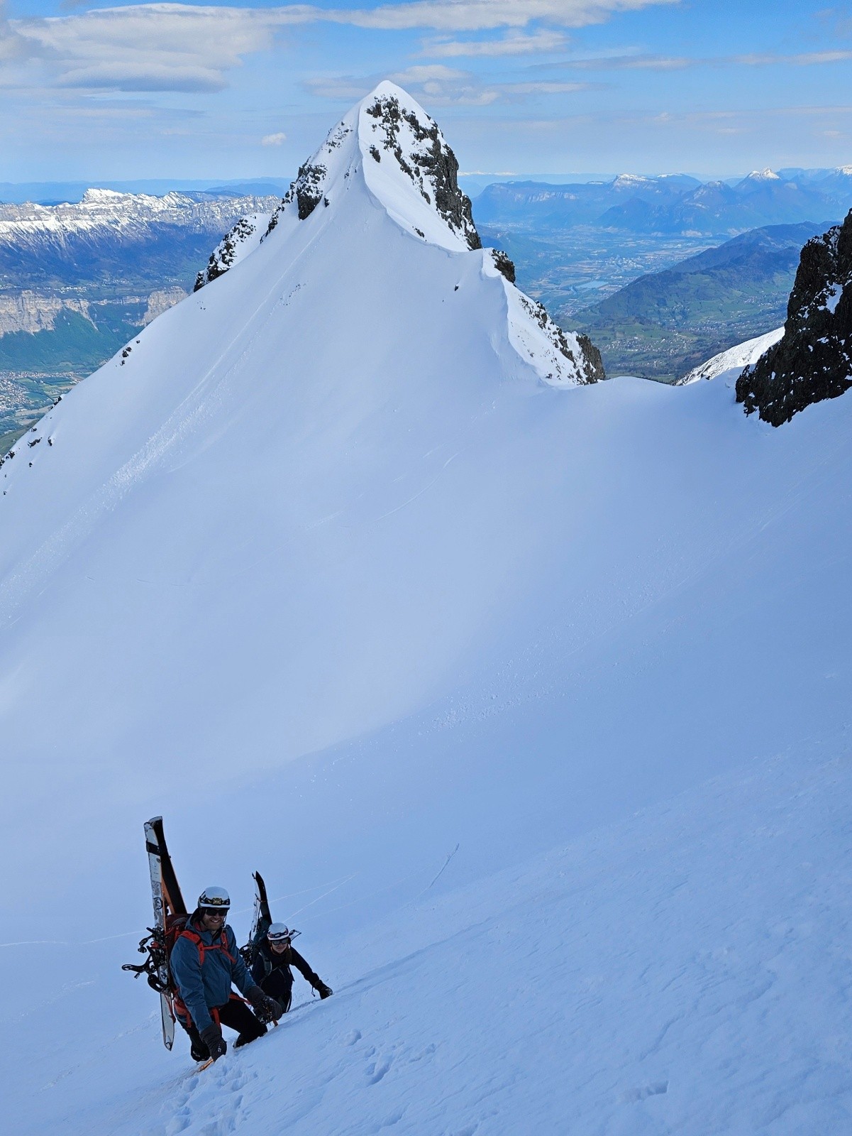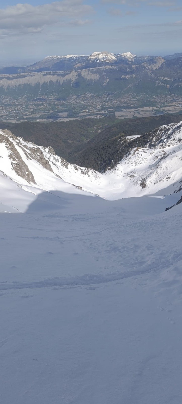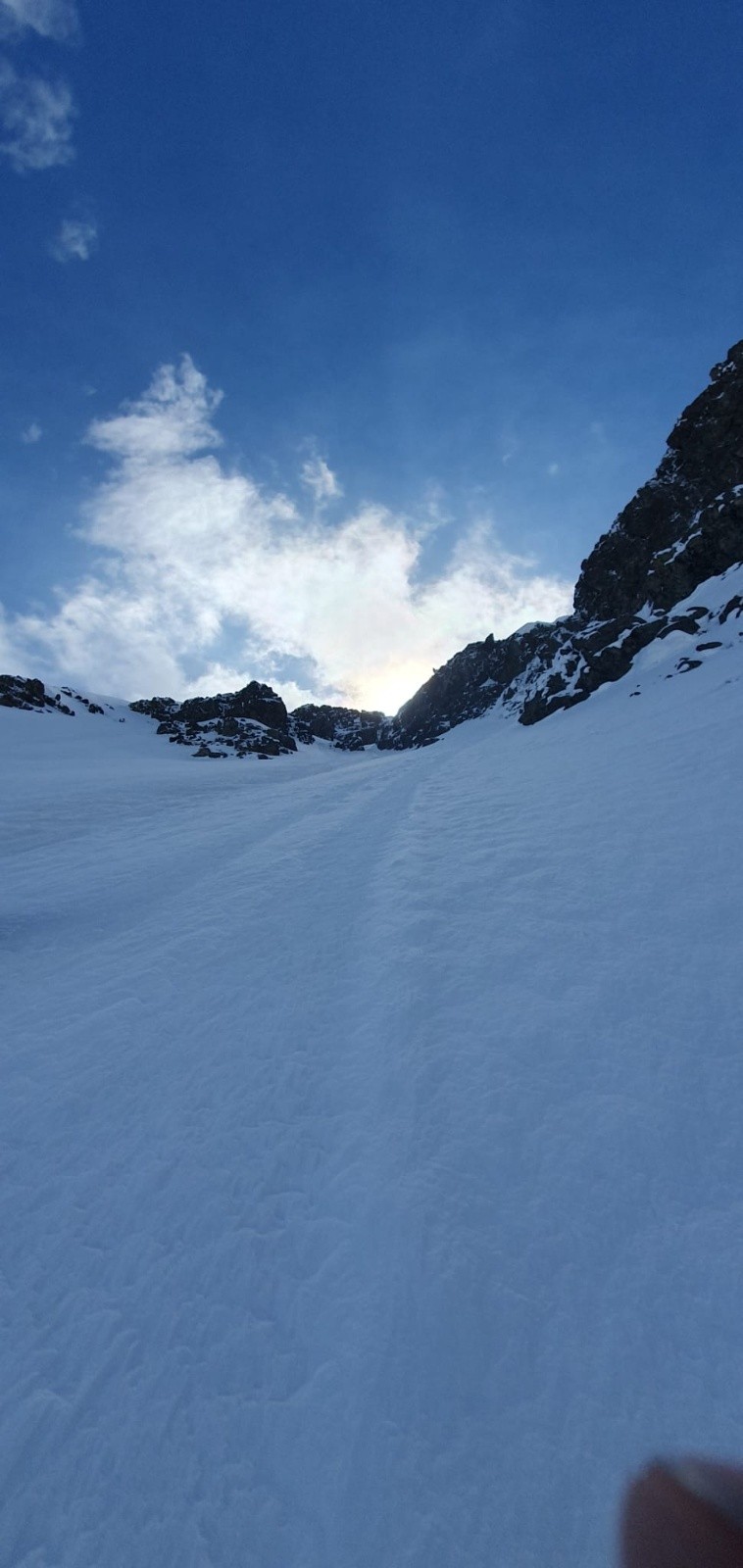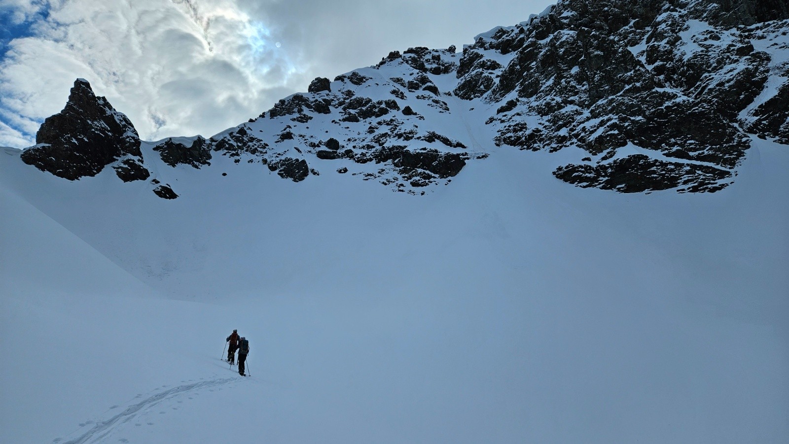 La face était trop dure et trop soufflée pour la skier (chattiere et 30 derniers mètres béton/glacés), donc redescente dans la moquette de la face sud, puis long portage jusqu'au parking, dommage...