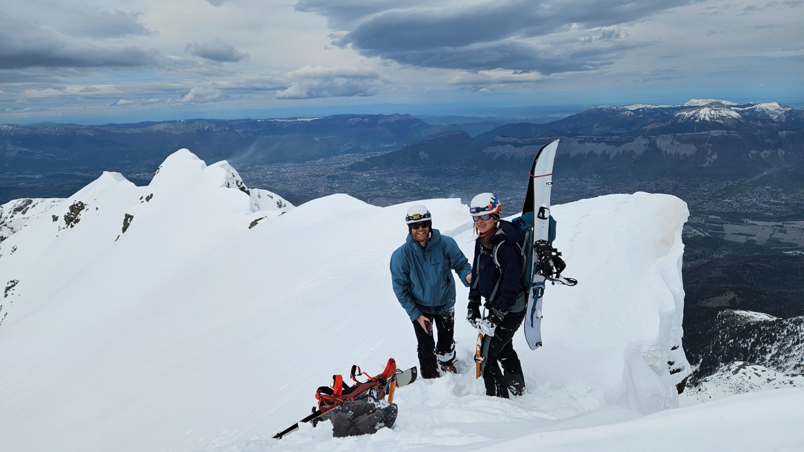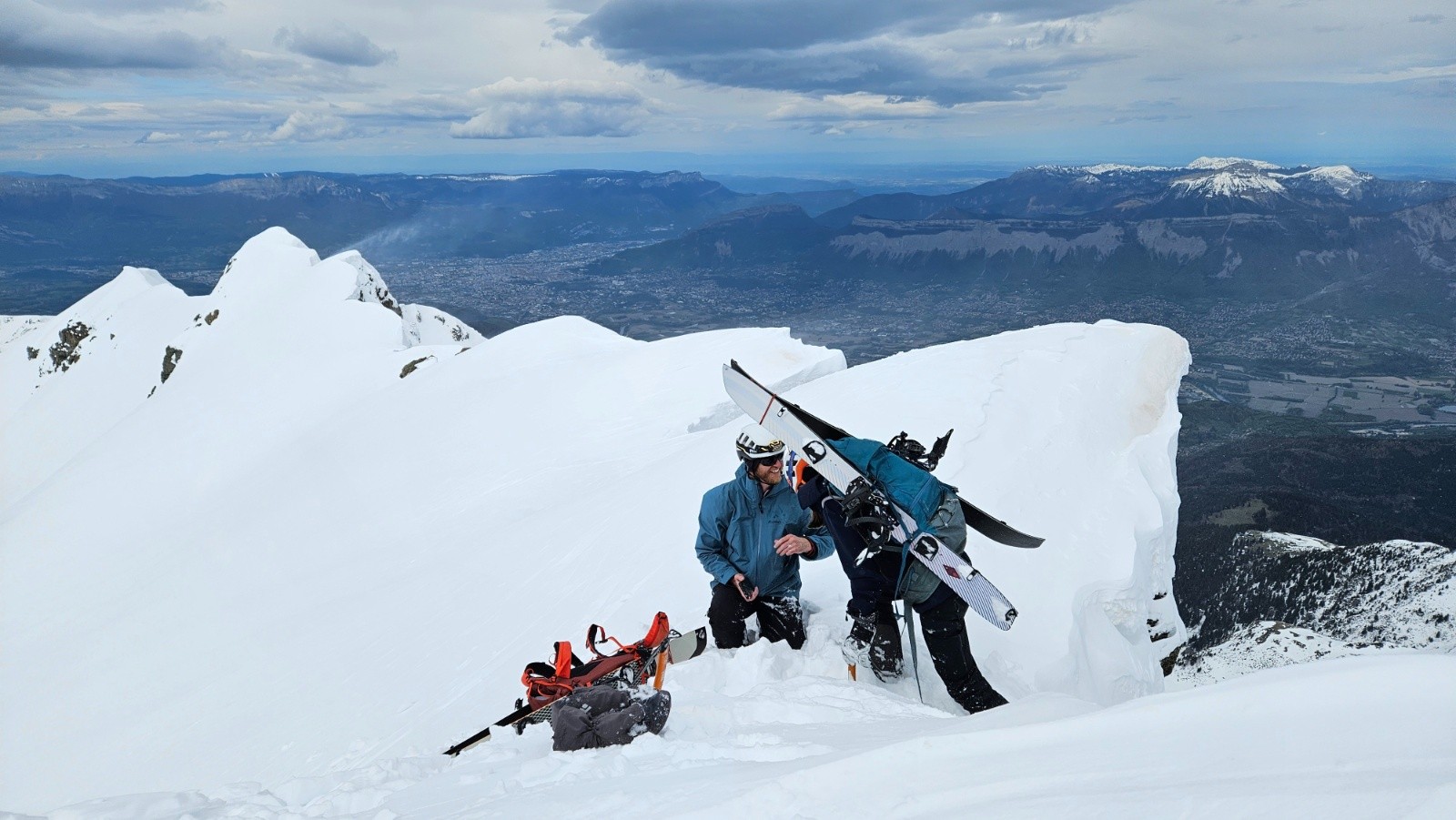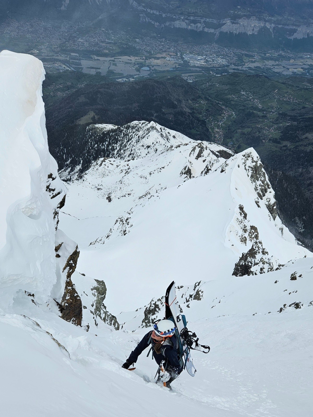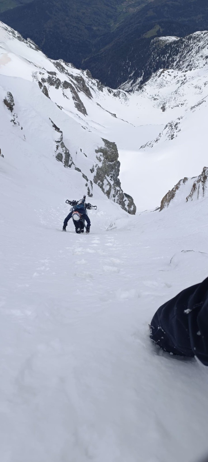 La face était trop dure et trop soufflée pour la skier (chattiere et 30 derniers mètres béton/glacés), donc redescente dans la moquette de la face sud, puis long portage jusqu'au parking, dommage...