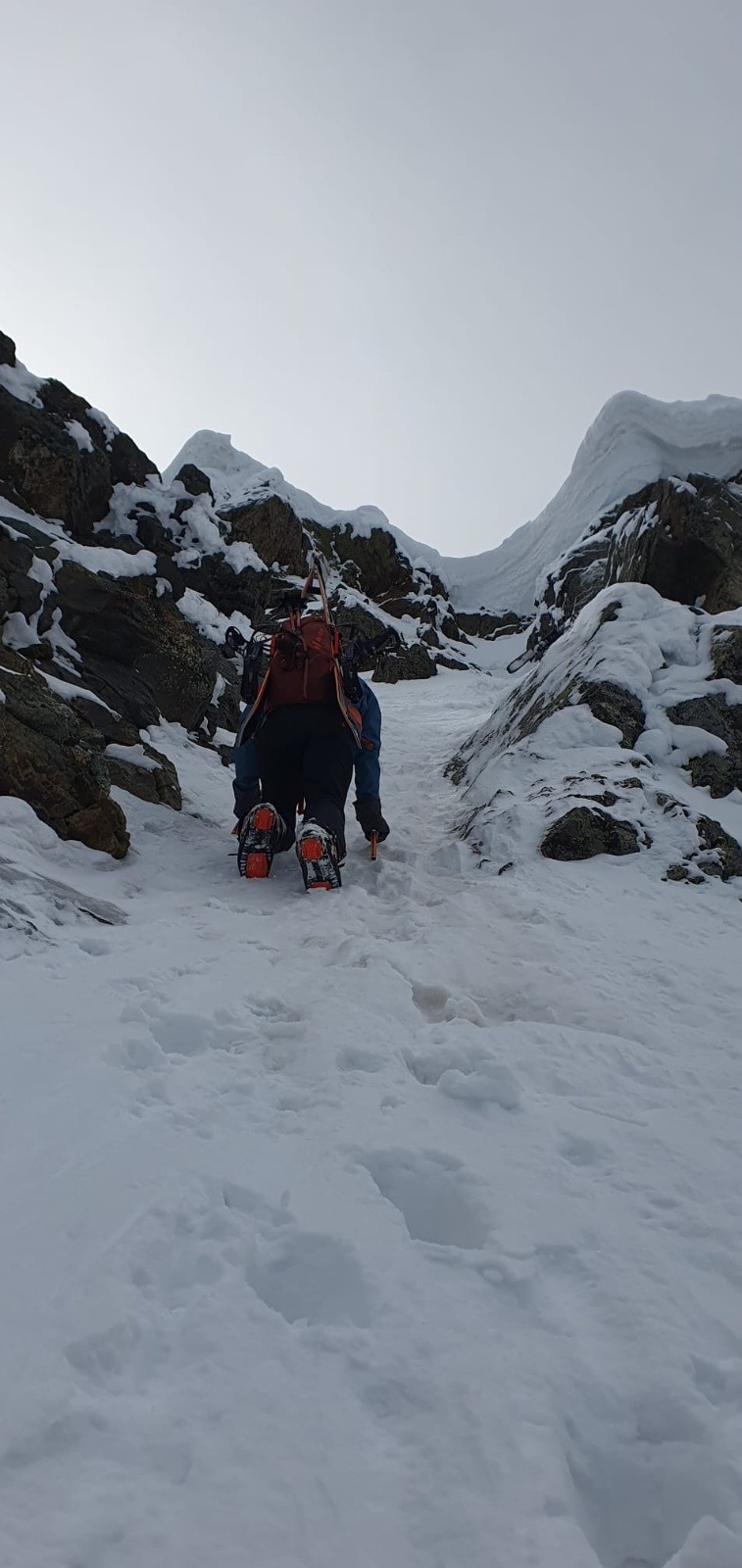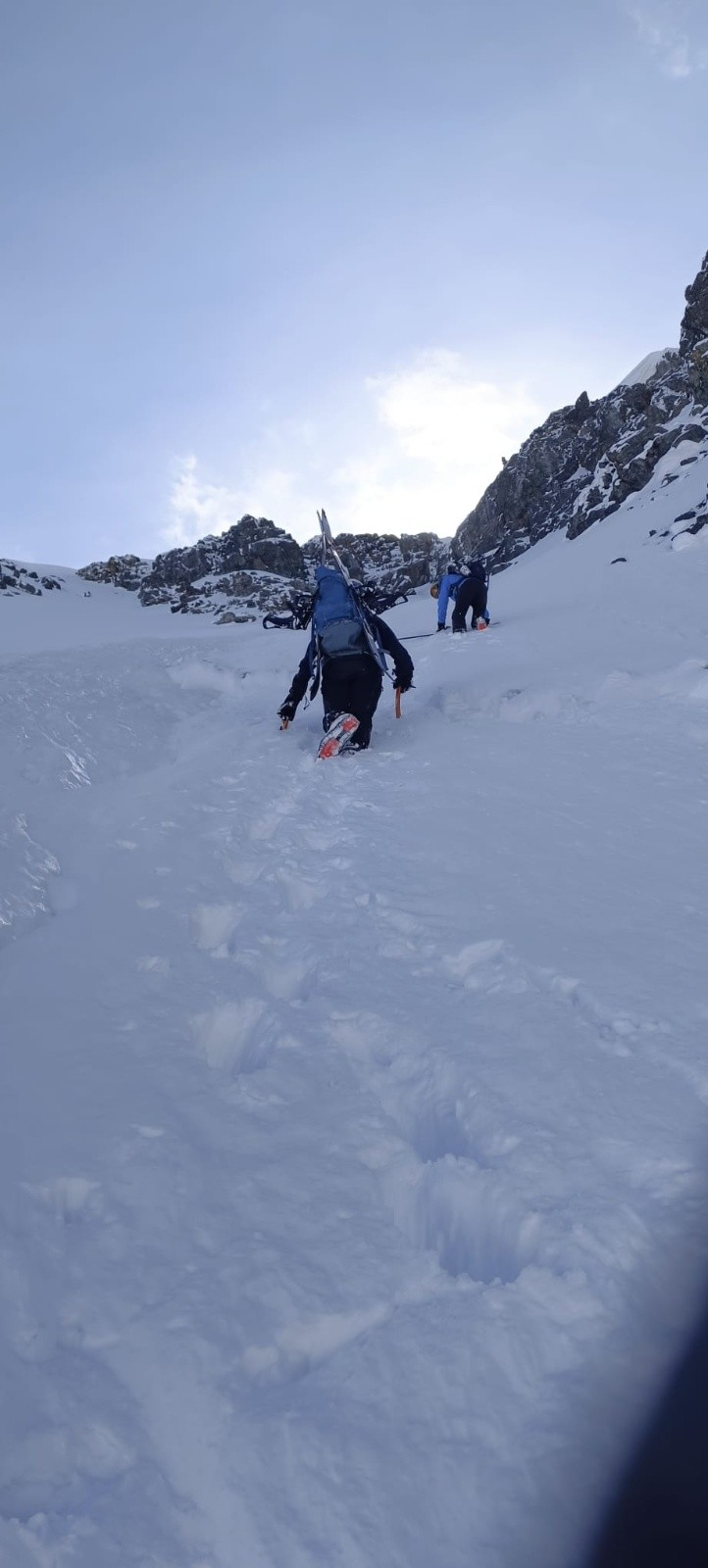 Portage depuis Pré Raymond jusqu'au Crozet, remontée dans la combe du Pic du Loup jusu'au col, remontée dans la combe NW de la grande Lance, remontée de la face NW.