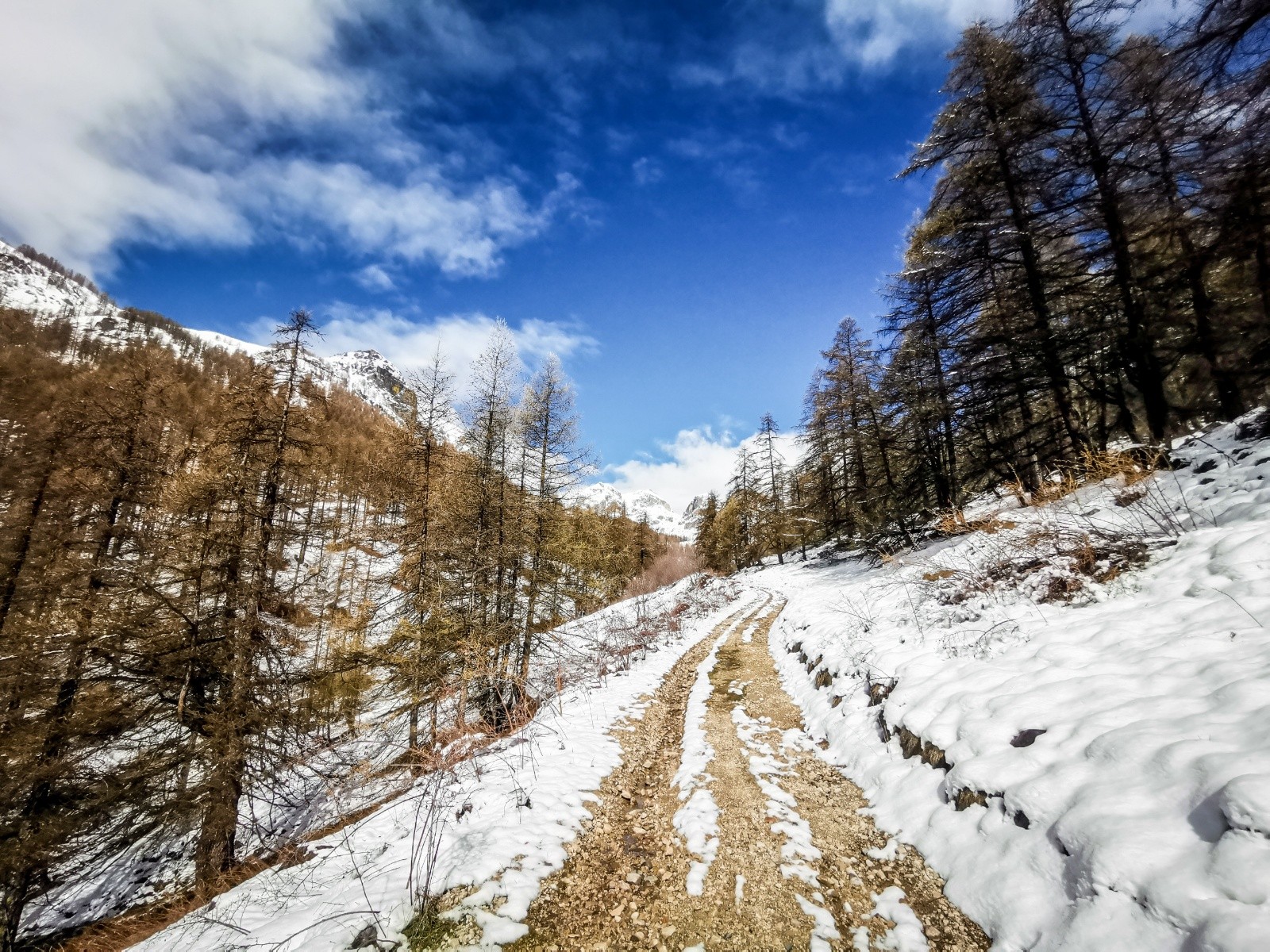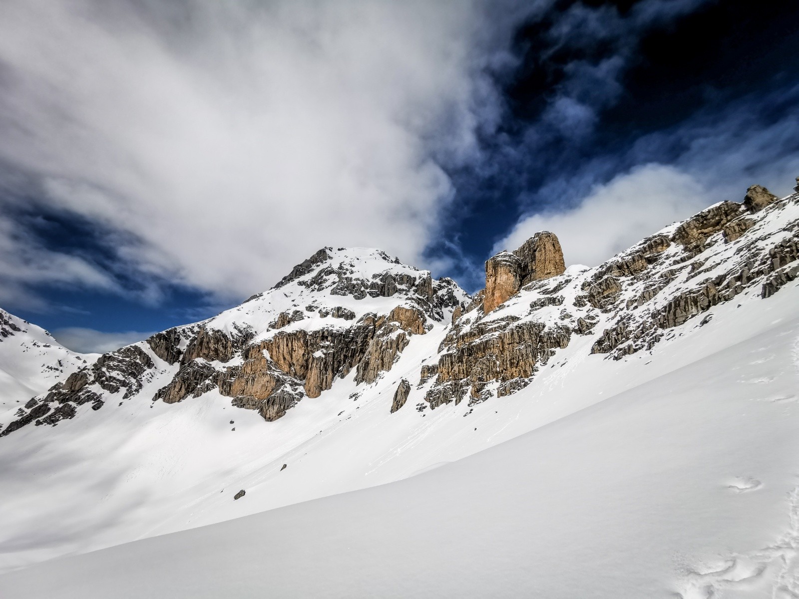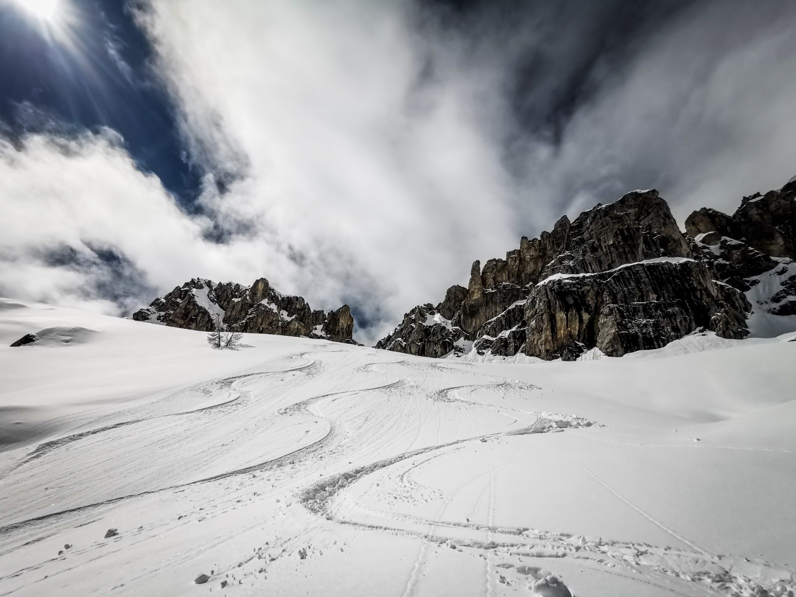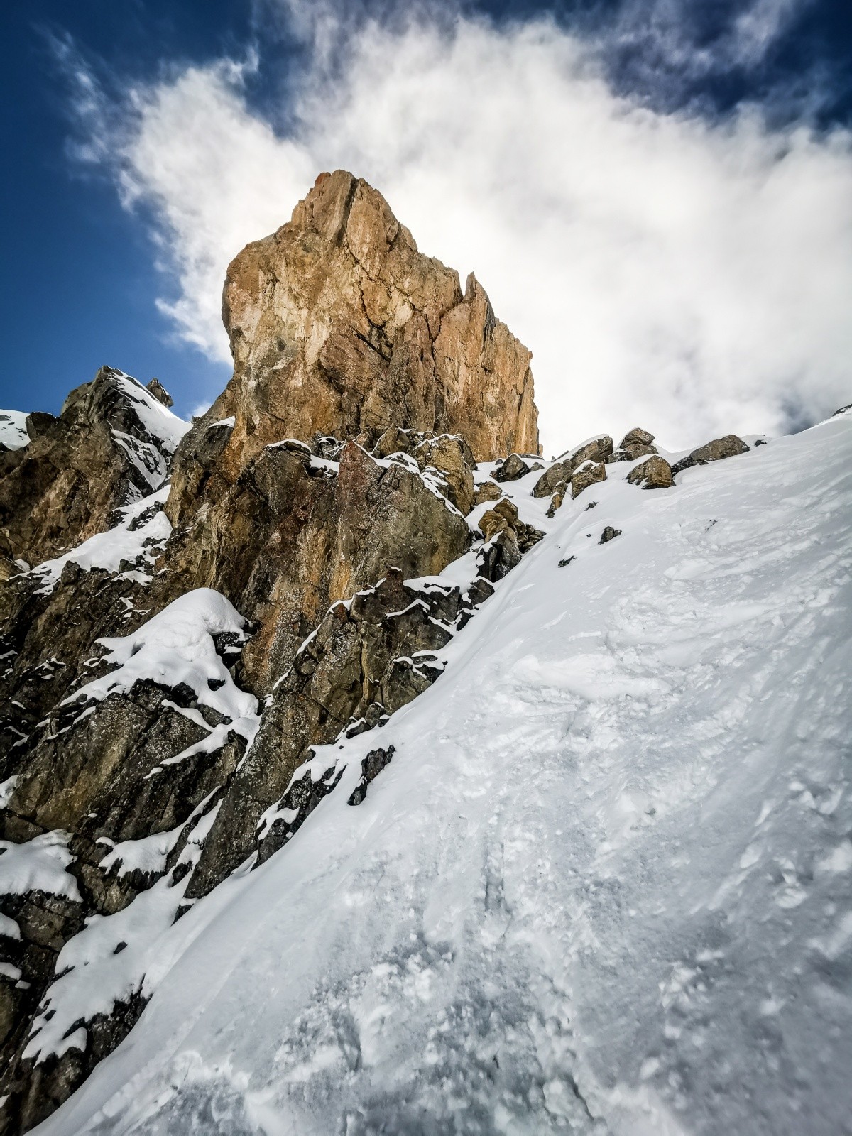 Parti à vélo depuis les environs de Briançon, je chausse les skis depuis le bout de la piste des Combes à 1906m. Après un premier run poudreux dans la crête de la Bressière en boucle par la Trancoulette, où deux skieurs m'ont précédé, je repeaute pour une deuxième Trancoulette, direction la Croix d'Aquila et la descente du ravin du Jeu de Paume.