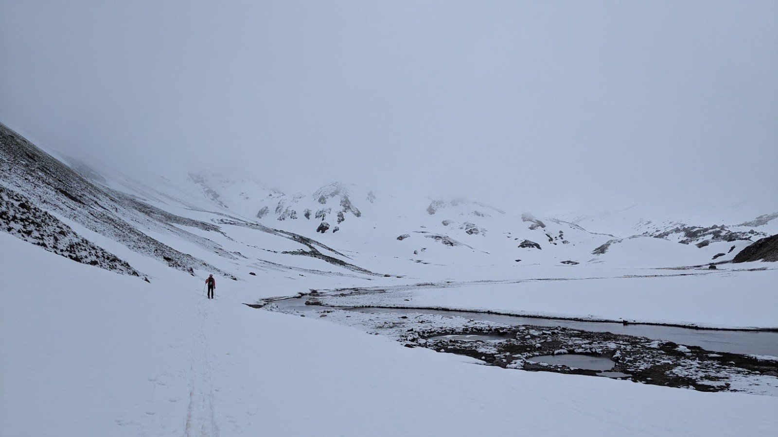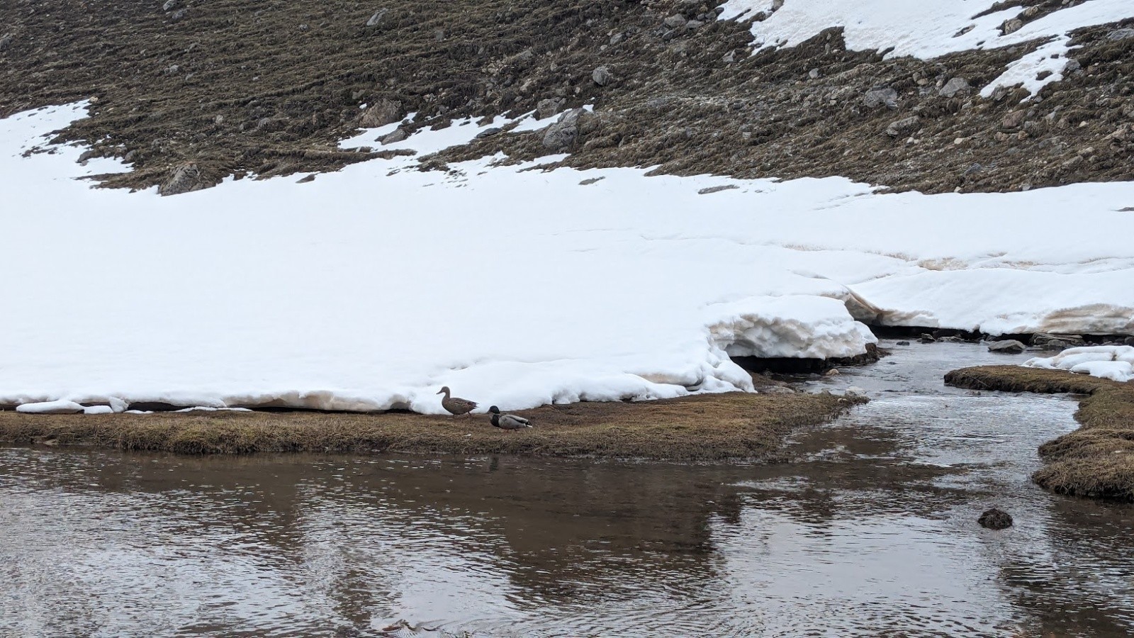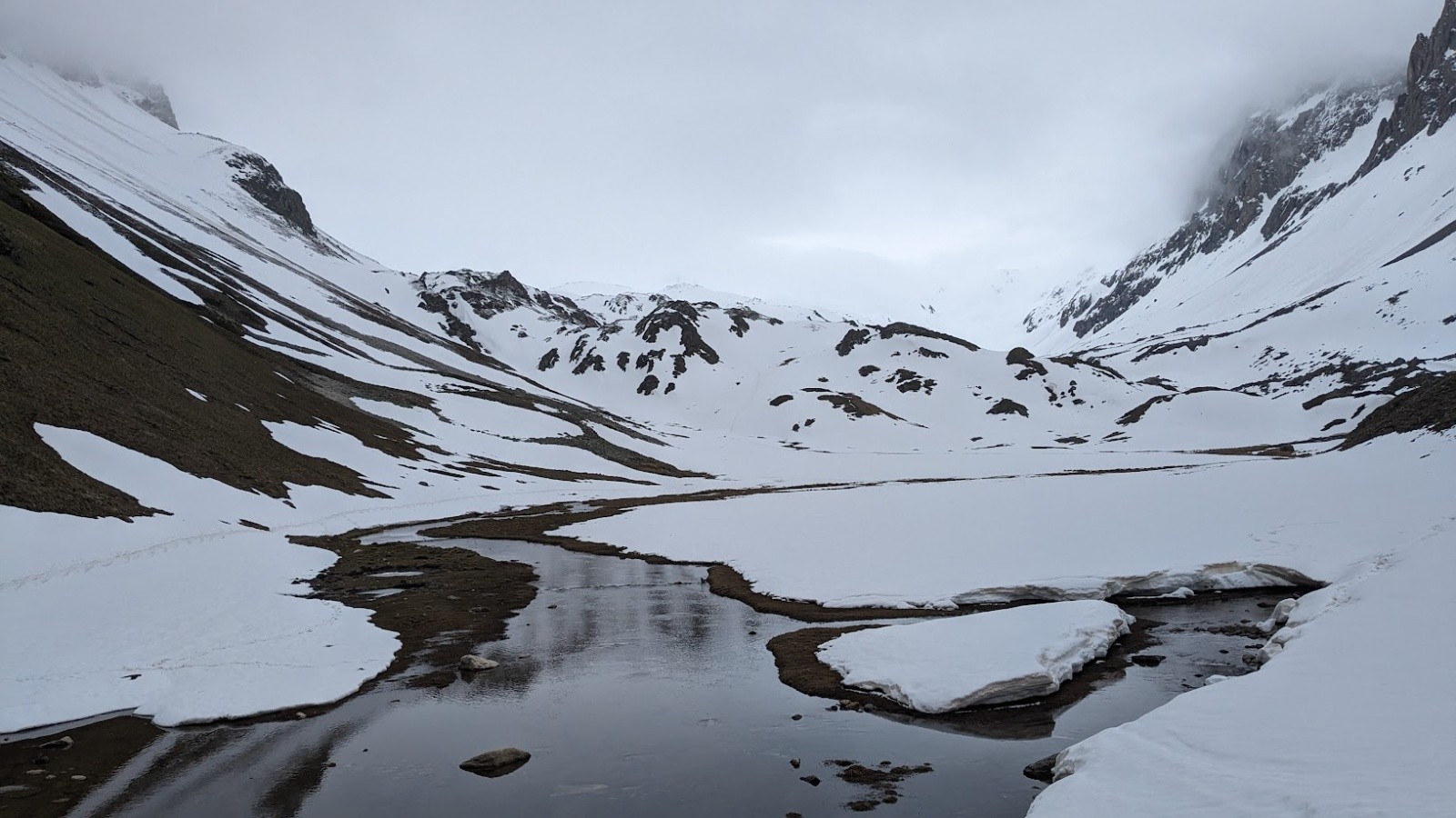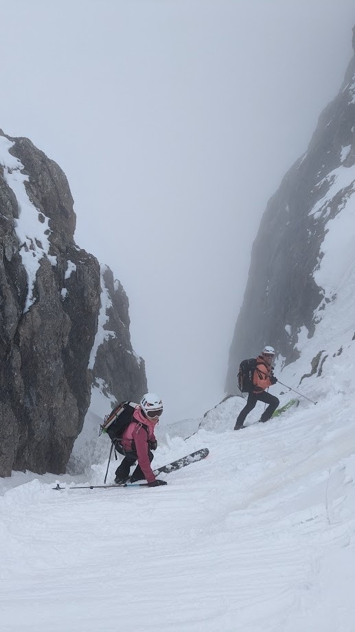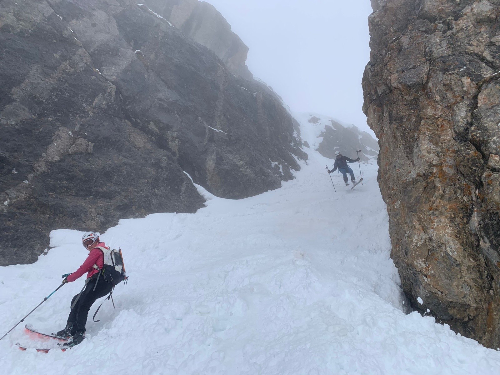 Conditions pour le ski : Bonne neige à skier type poudre lourde du sommet jusqu'au lac puis collante chiante