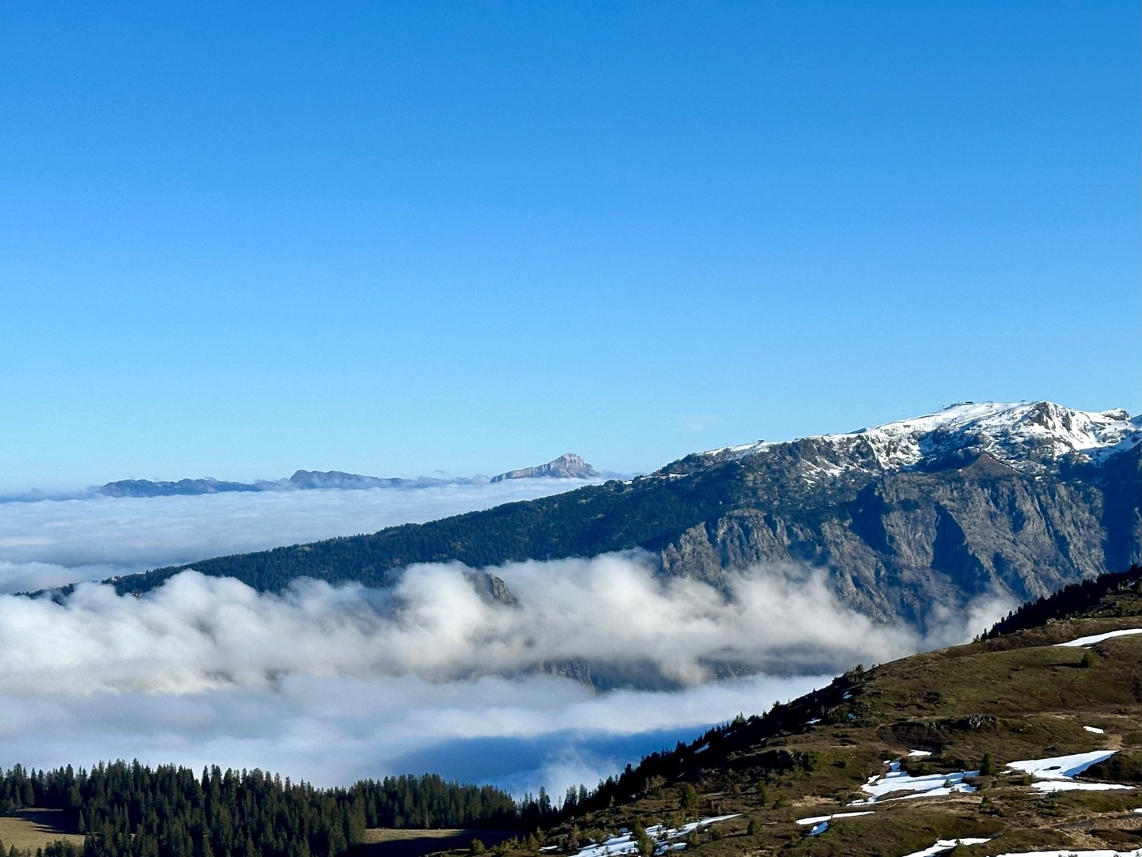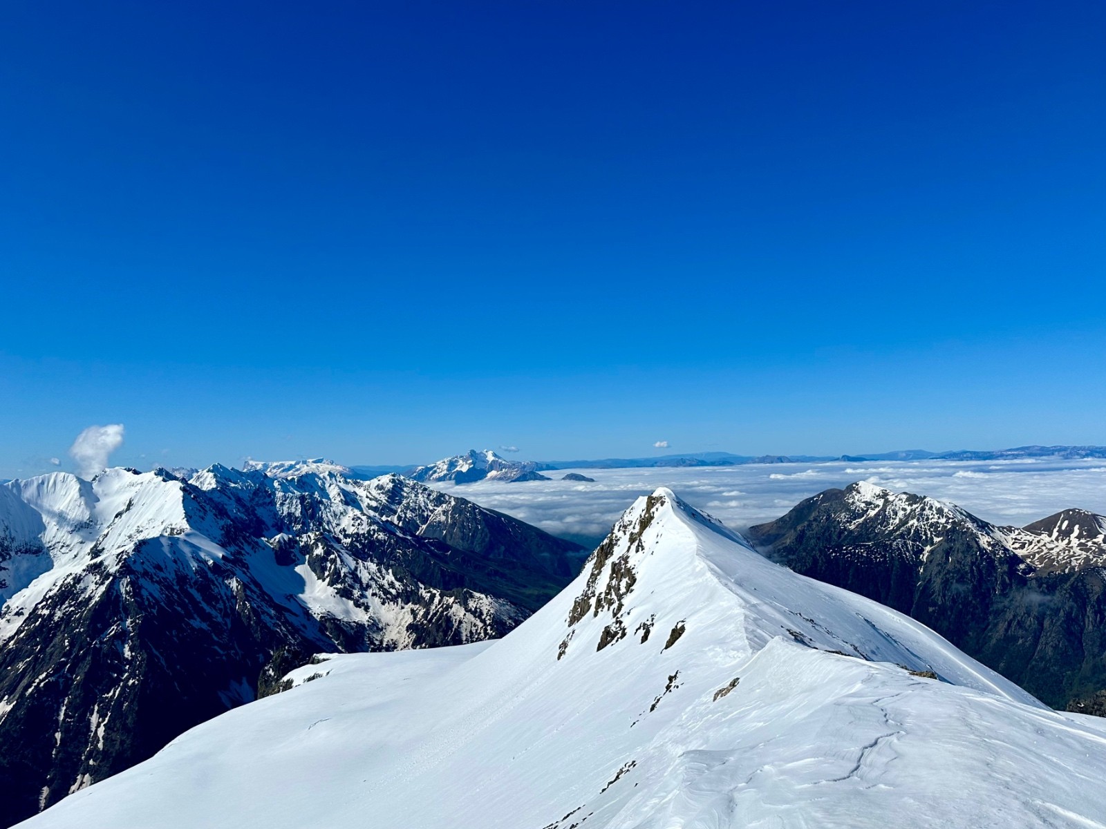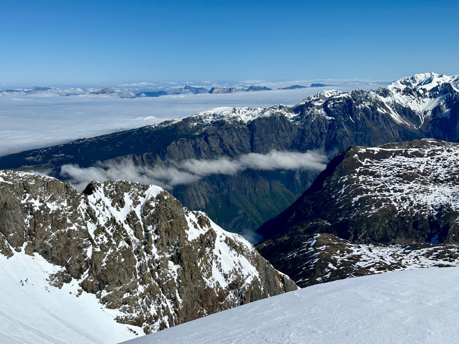 Conditions pour le ski : Regel sensible au départ. Dès qu'il est au soleil, la manteau se réchauffe vite : le bas de la combe est déjà un peu mou à la montée, la deuxième partie est bien. La pente W finale est béton.