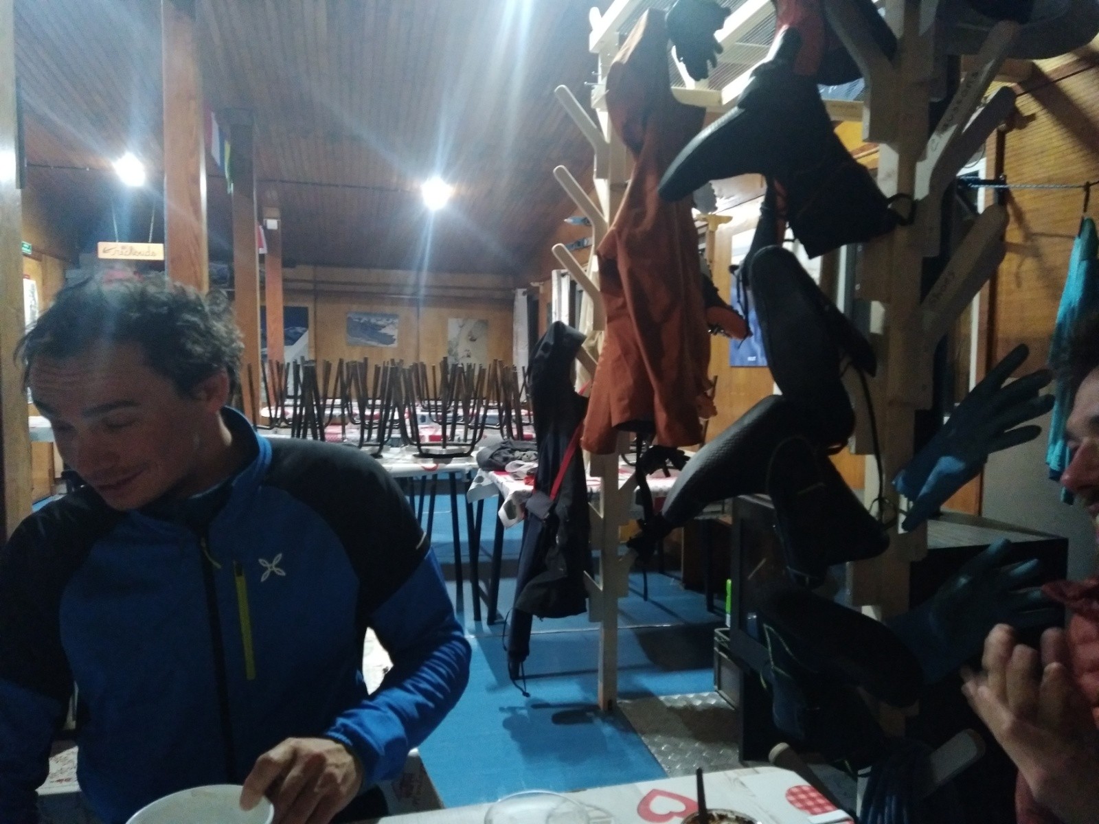 On arrive au refuge sans surprise en retard sur le planning, vers 17h-18h. On ne sera que 3 ce soir là... Malgré 20 réservations d'après le gardien. On mange vers 19h et on se couche vers 21h pour un réveil programmé à 1 heure le lendemain.