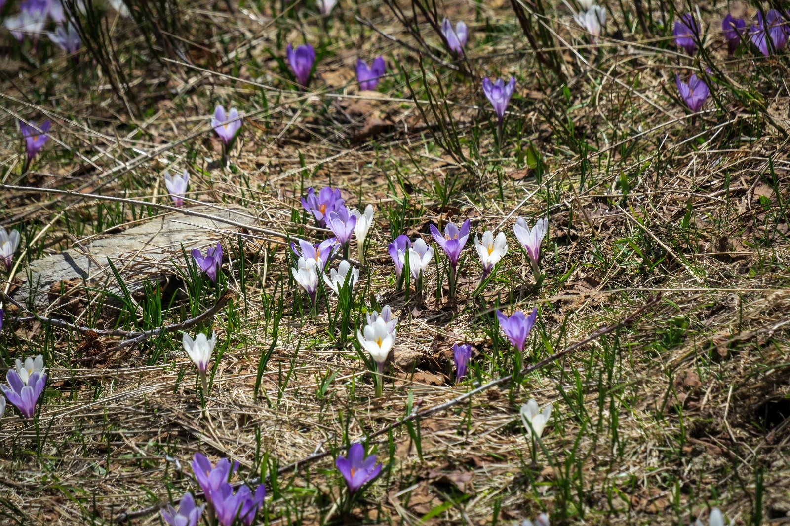 Un fois les skis sur le sac sous les vernes, ce fut le deuxième émerveillement de la journée avec un festival de crocus ! C'est beau le ski de printemps !