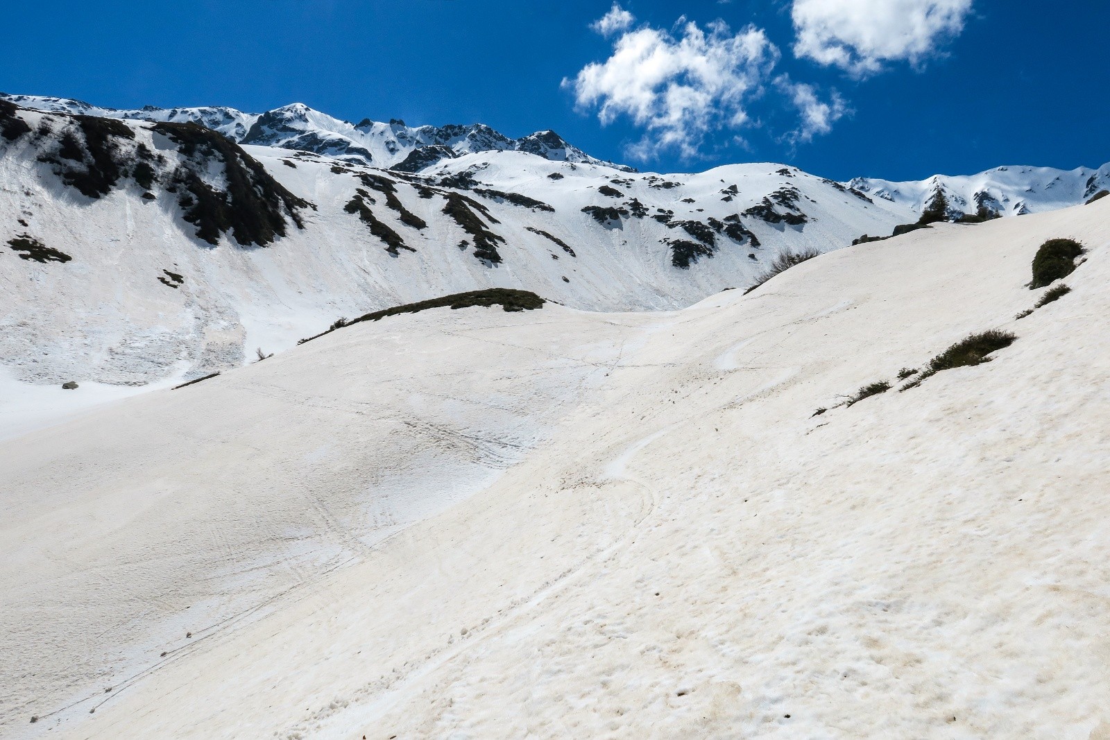 - Vallon du Vouteret : humidification de plus en plus prononcée en descendant. Pas de neige pourrie à 11h45, le ski reste toujours agréable malgré la lourdeur.