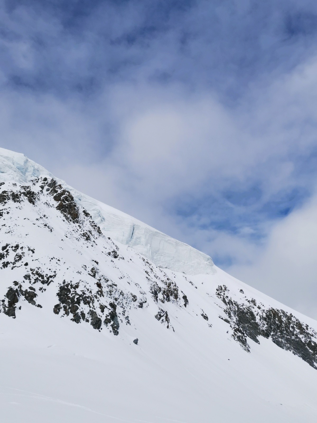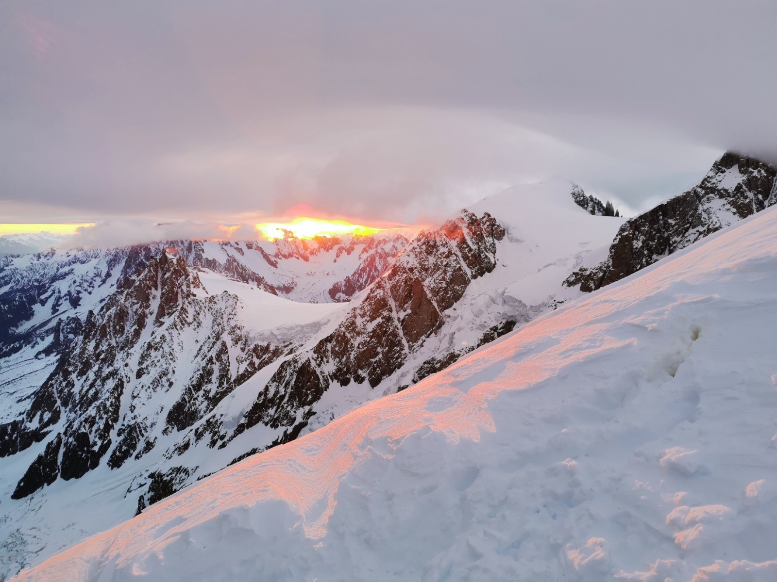 La veille on aurait aimé parfaire l'acclim avec petite arrête à Laurence + glacier rond, ça aurait donné un petit aspect freeride assez chouette à ce Mont Blanc. Mais la compagnie du mont blanc n'étant pas d'accord entre eux sur le fait que les 3 premières bennes sont normalement réservé alpiniste, on a dû attendre 10h40 cette fois ci... Un peu tard pour ce programme et passage de jonction peut être, sous un soleil bien présent.