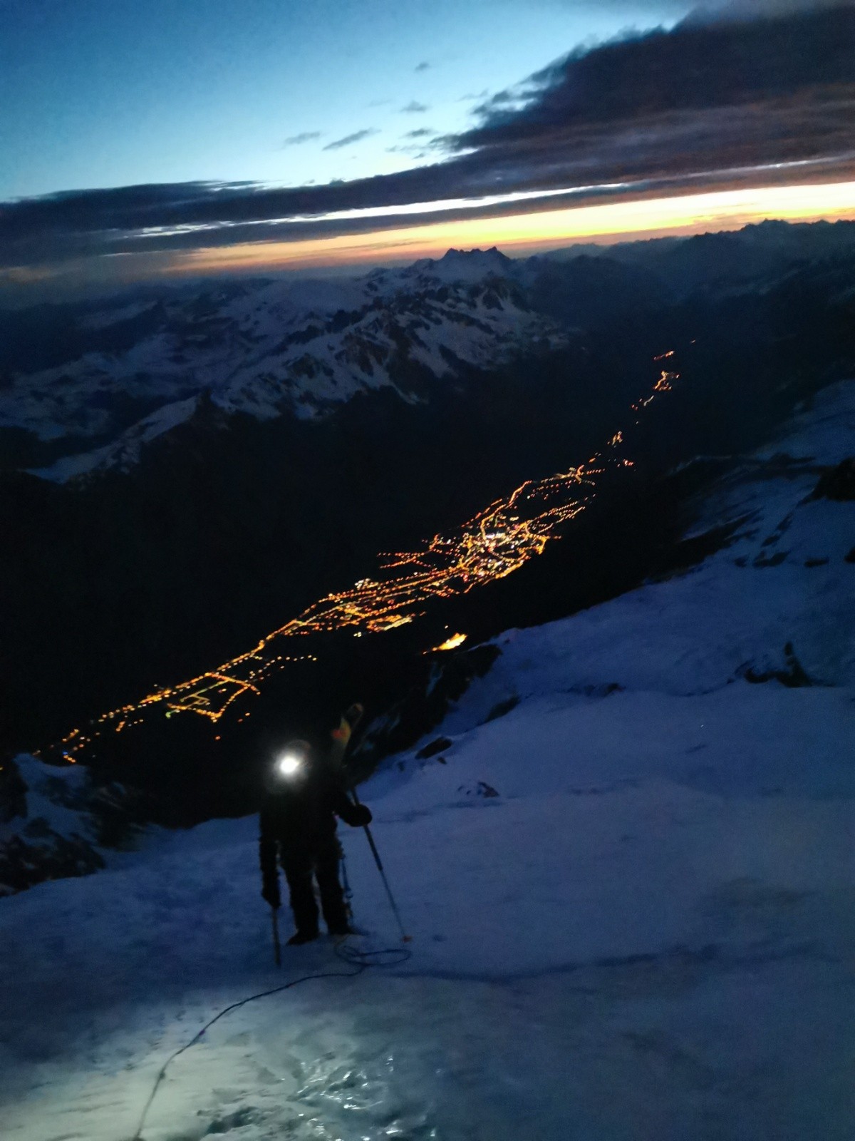 Itinéraire suivi : mont blanc par l arrête nord du dôme et arrête des bosses, descente en face nord si sommet. On est réellement descendu par col du dôme et plateaux.