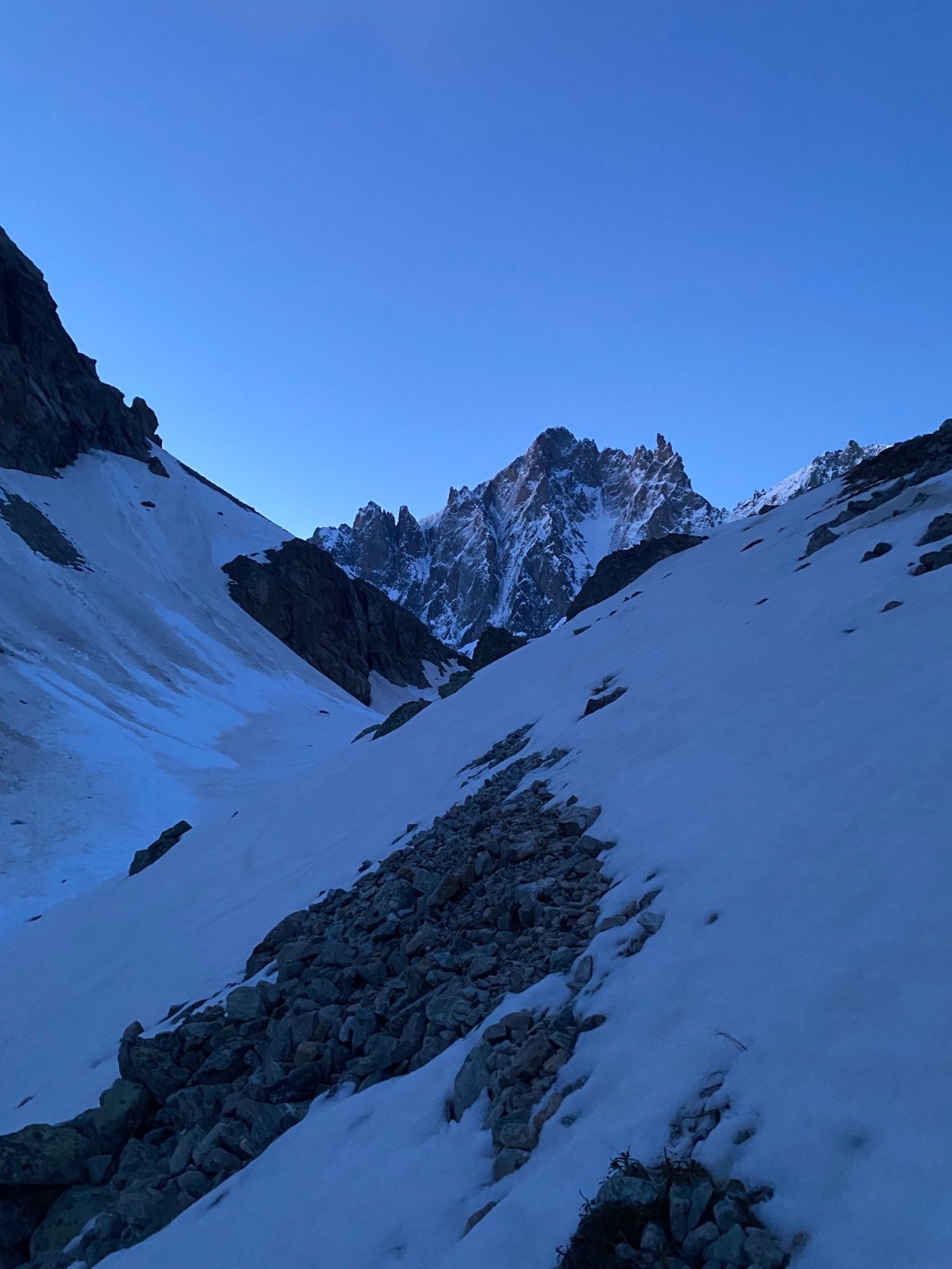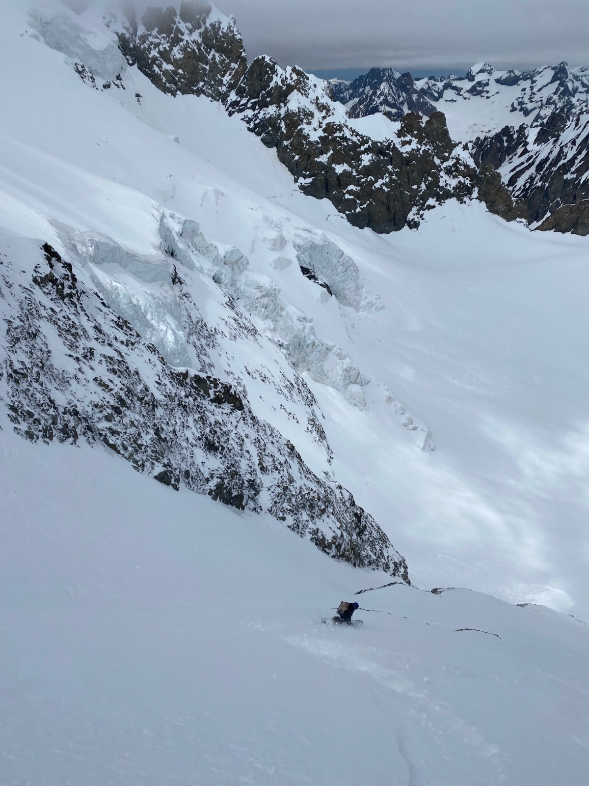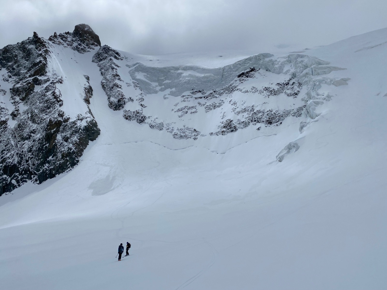 Altitude de chaussage/déchaussage : A la montée nous avons remonté le vallon à pied jusqu’à 2500 et à la descente on a emprunté un névé en nord qui nous a permis de déchausser vers 2000