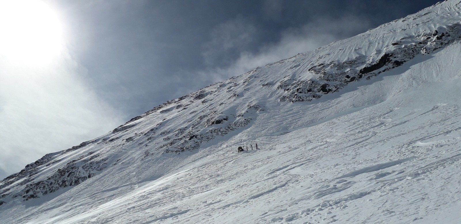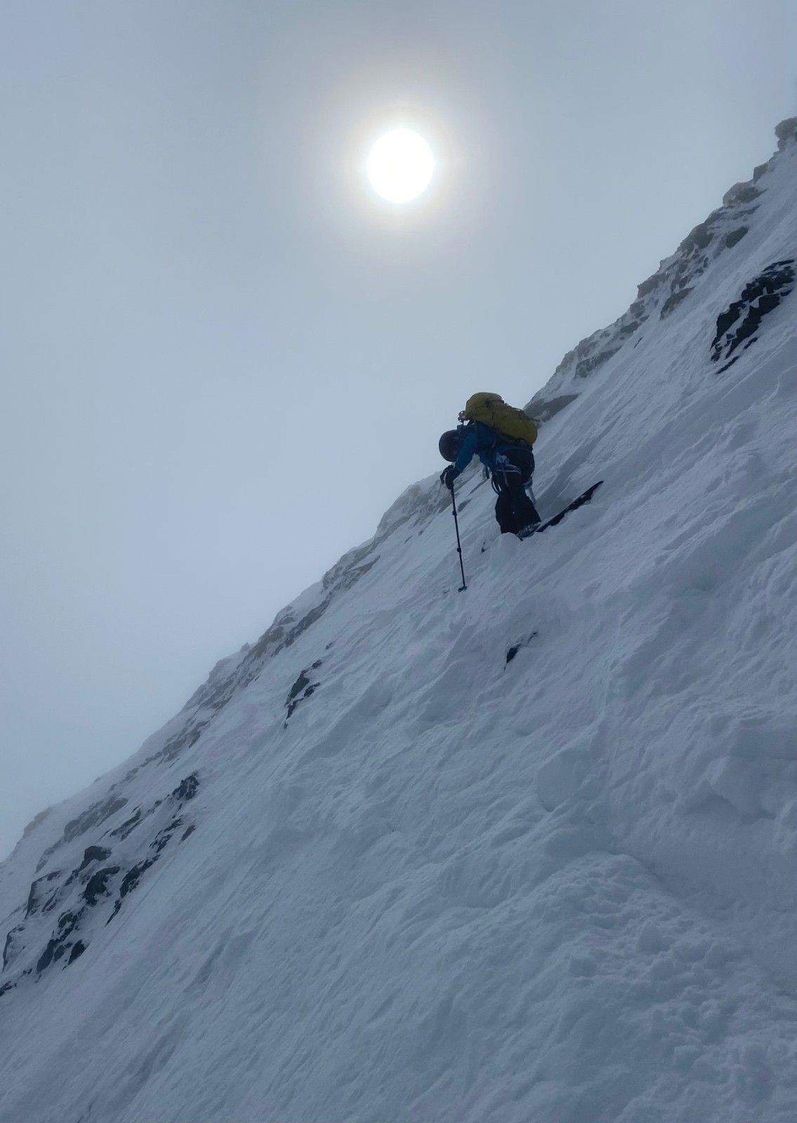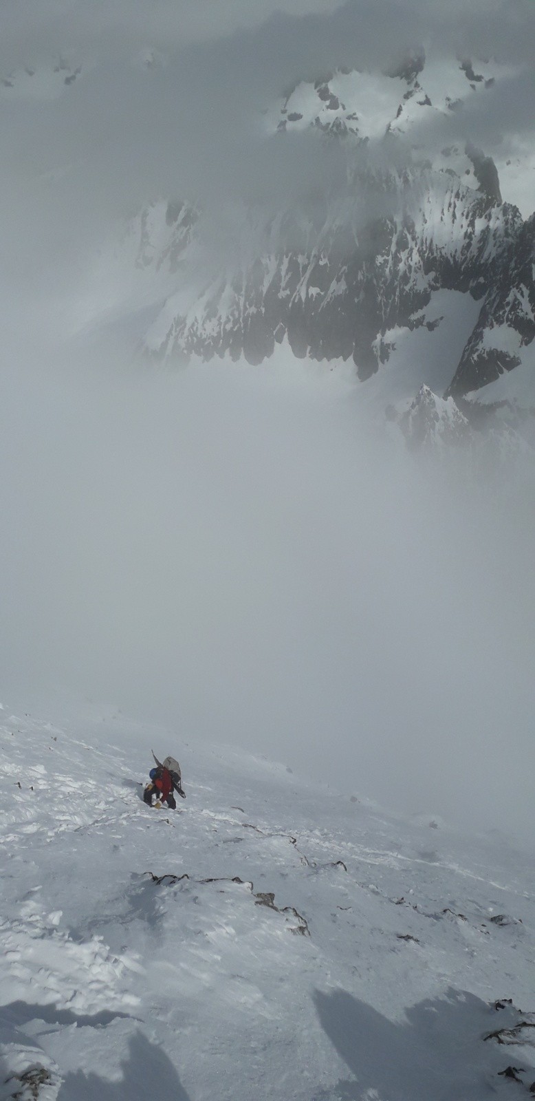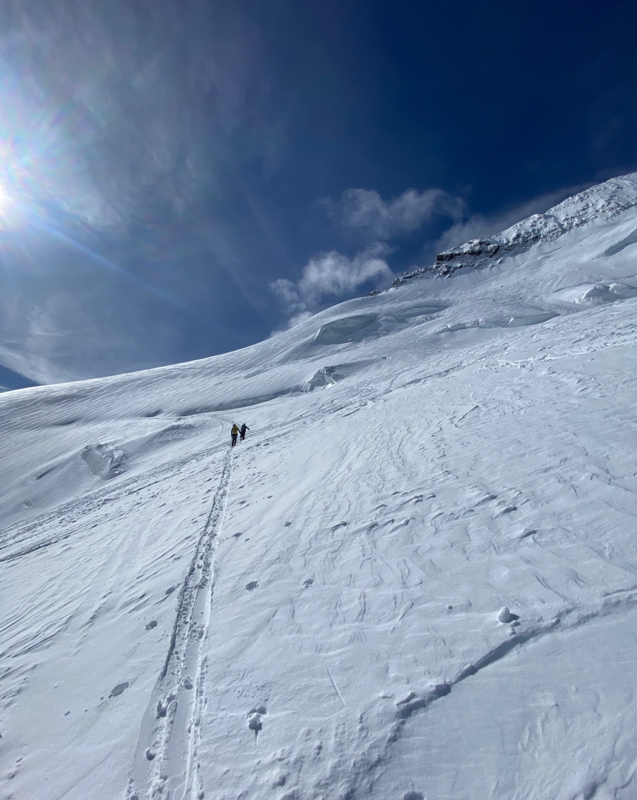 Altitude de chaussage/déchaussage : A la montée nous avons remonté le vallon à pied jusqu’à 2500 et à la descente on a emprunté un névé en nord qui nous a permis de déchausser vers 2000