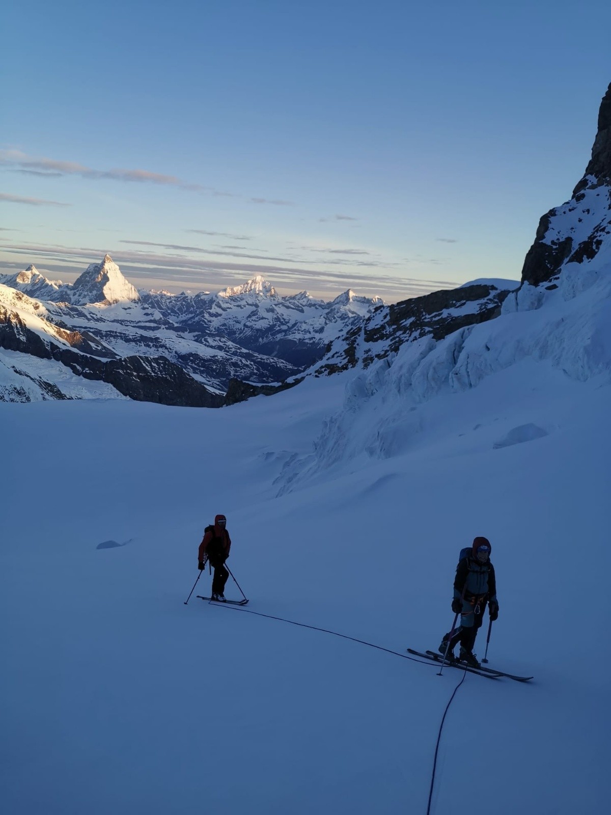 Conditions nivo et activité avalancheuse : RAS. Juste beaucoup de chutes de sérac au Lyskam observées dès 3h30.