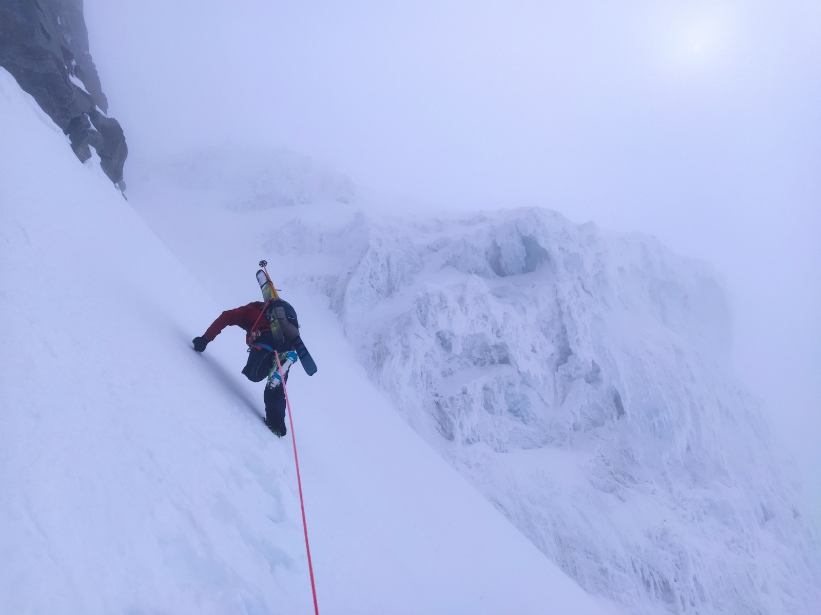Horaires : 6h30 de montée depuis le refuge. Regel très moyen, on a brassé sur tous les passages en crampons, on traversait la croûte