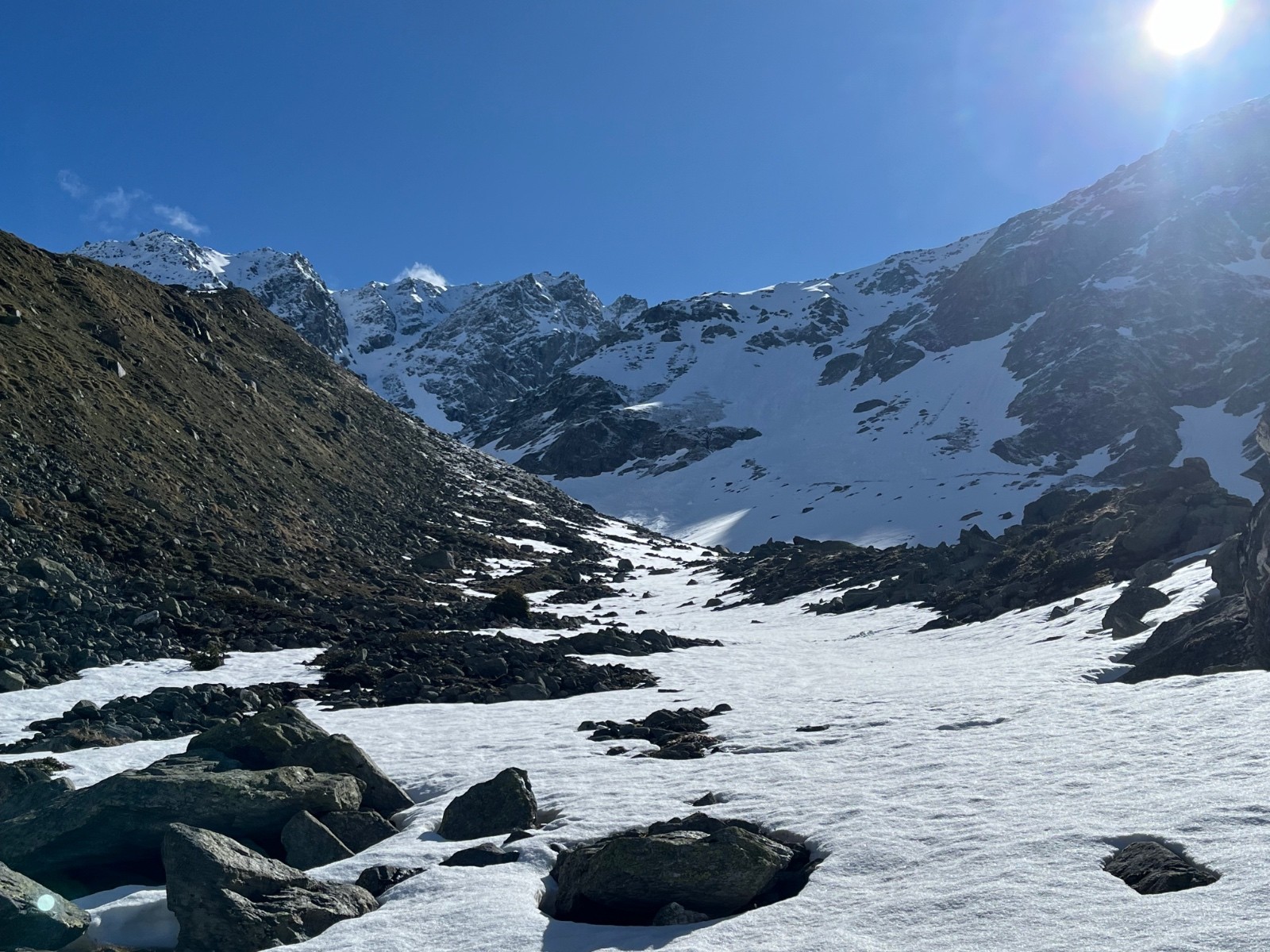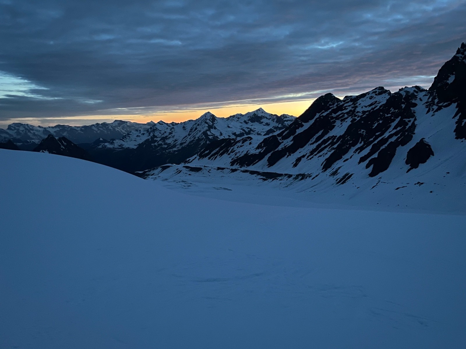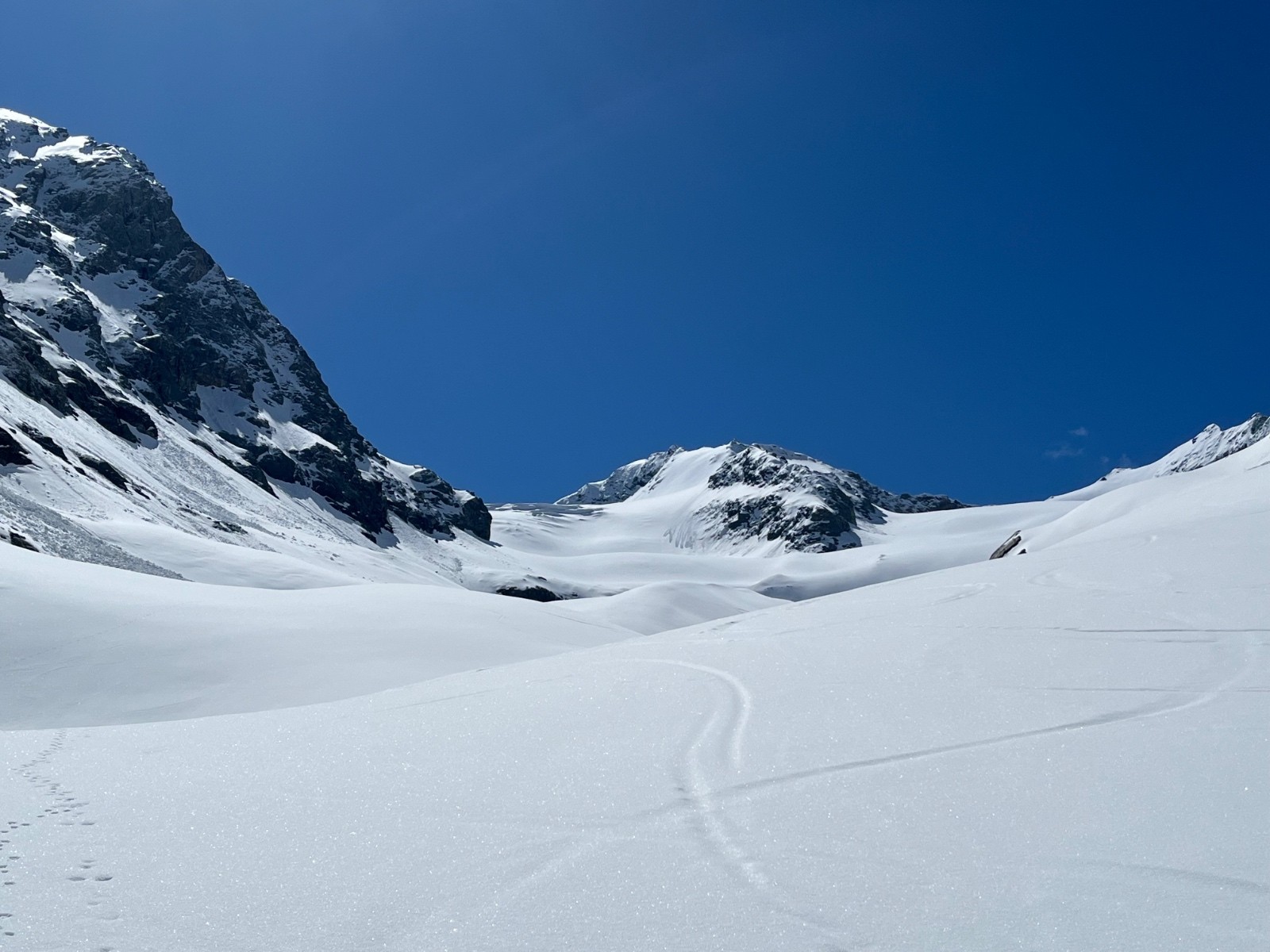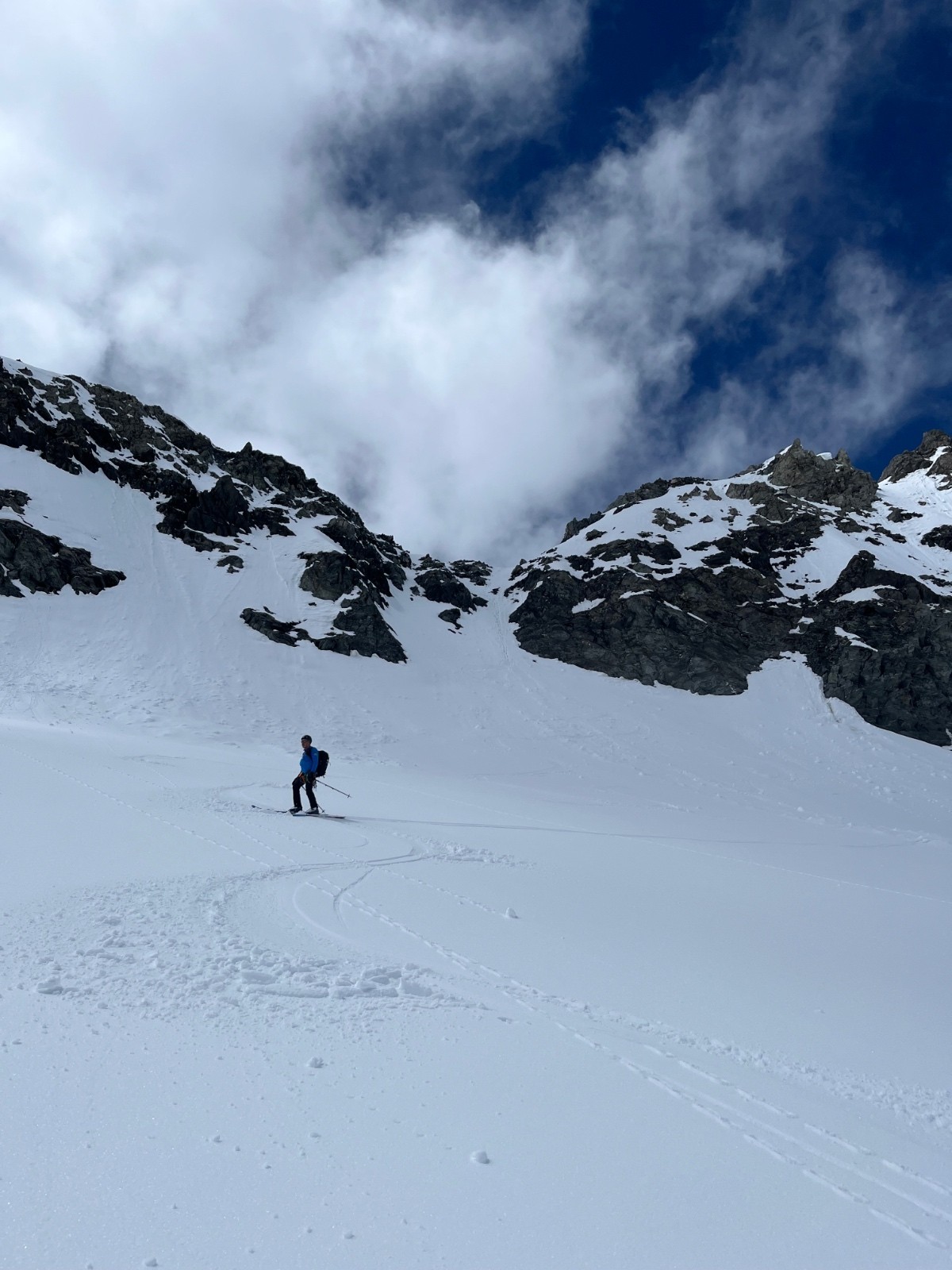 Conditions pour le ski : premier jour montée du glacier de boveire bonne neige couloir de panossiere transfo jusqu’àu refuge