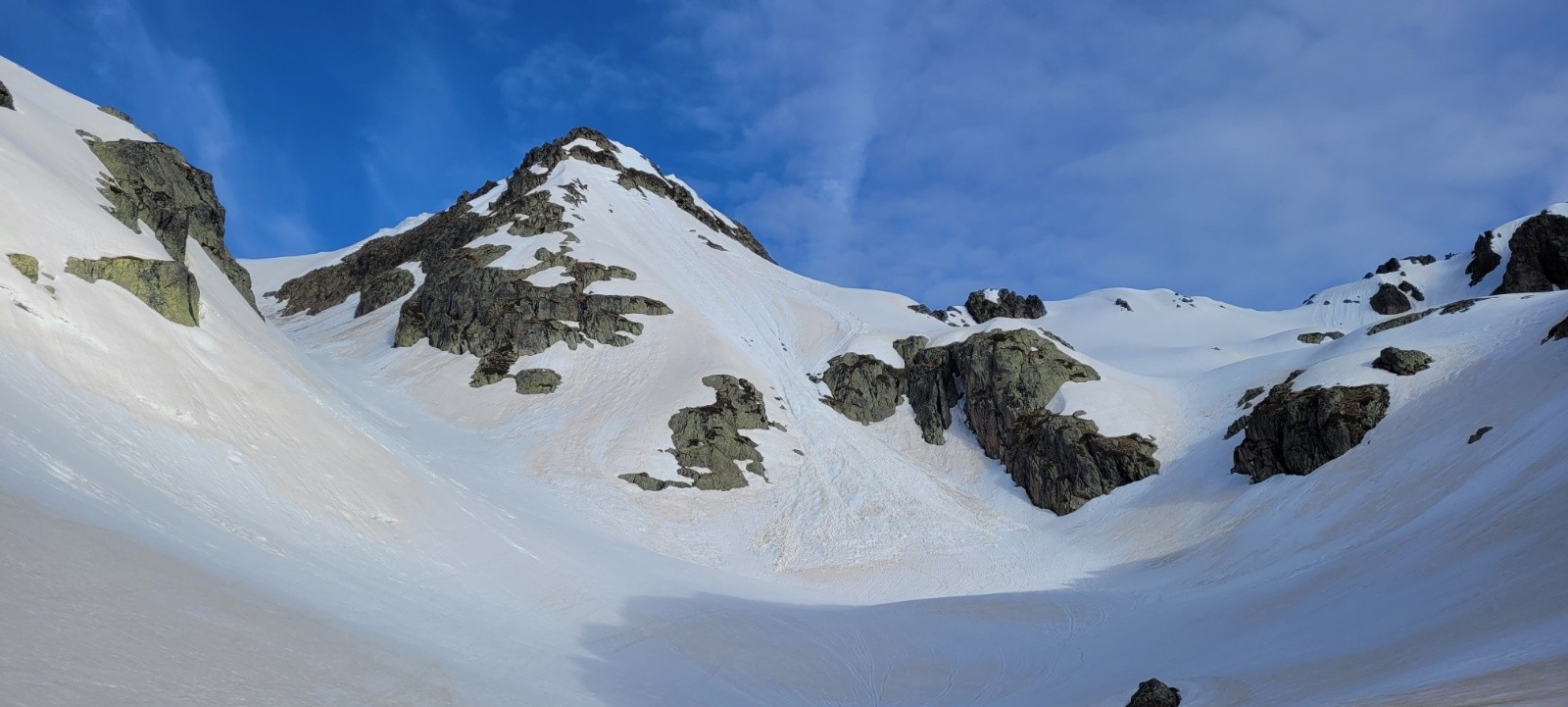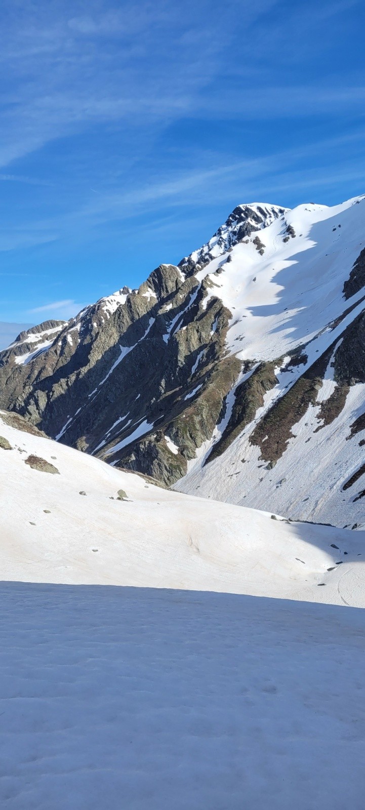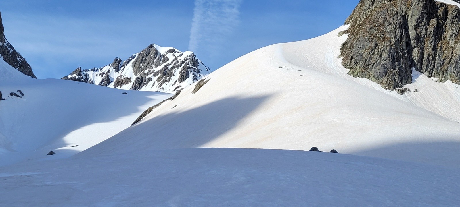 Traversée très pénible jusqu'au vallon de la croix, avec quelques traversées limite scabreuses de reste d'avalanches...Une bien mauvaise idée que de partir du col. On aurait du mieux assimiler les CR de skitour...
