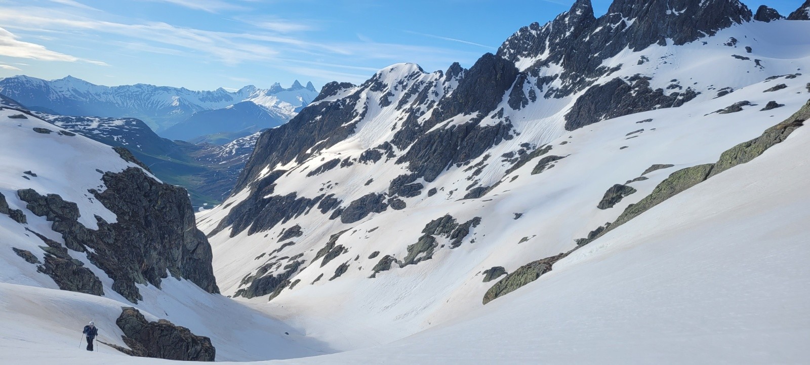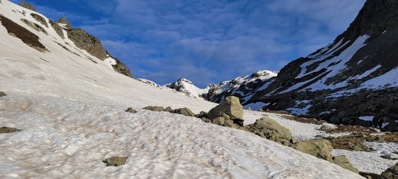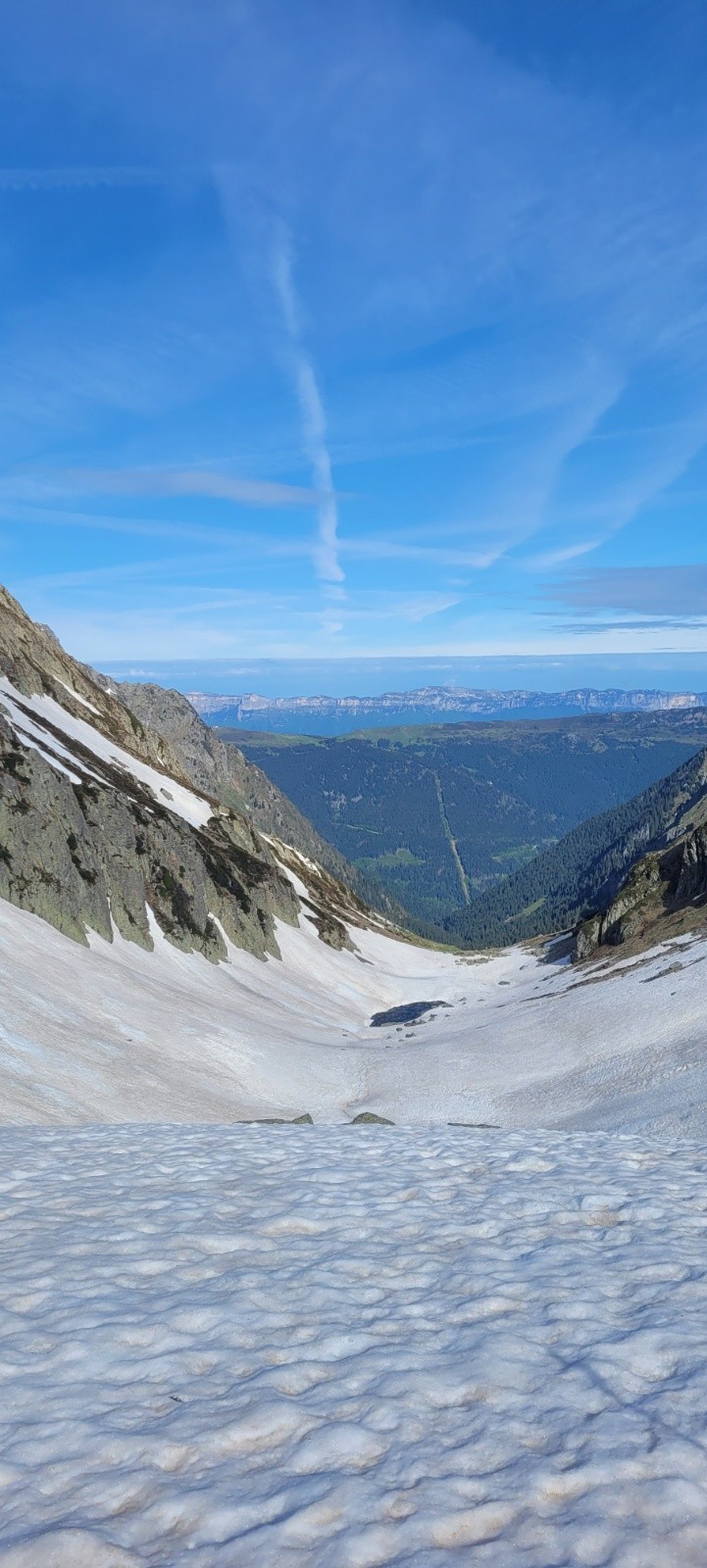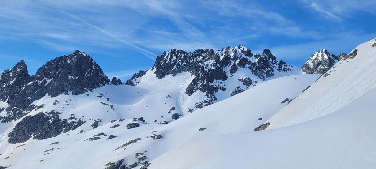 Traversée très pénible jusqu'au vallon de la croix, avec quelques traversées limite scabreuses de reste d'avalanches...Une bien mauvaise idée que de partir du col. On aurait du mieux assimiler les CR de skitour...