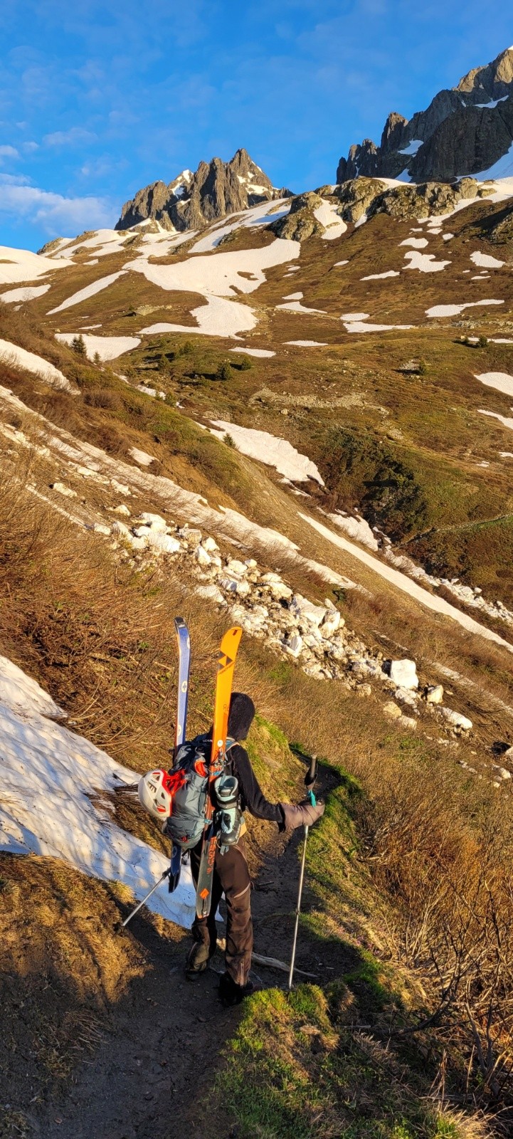 (on pensait que la combe serait à l'ombre, protégée du soleil par les aiguilles, mais ce n'est pas le cas! J'ai depuis découvert shademap.app/ qui permet de bien anticiper l'ensoleillement en fonction de l'horaire!).
