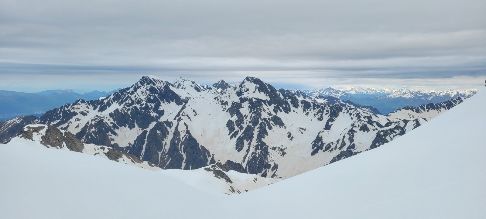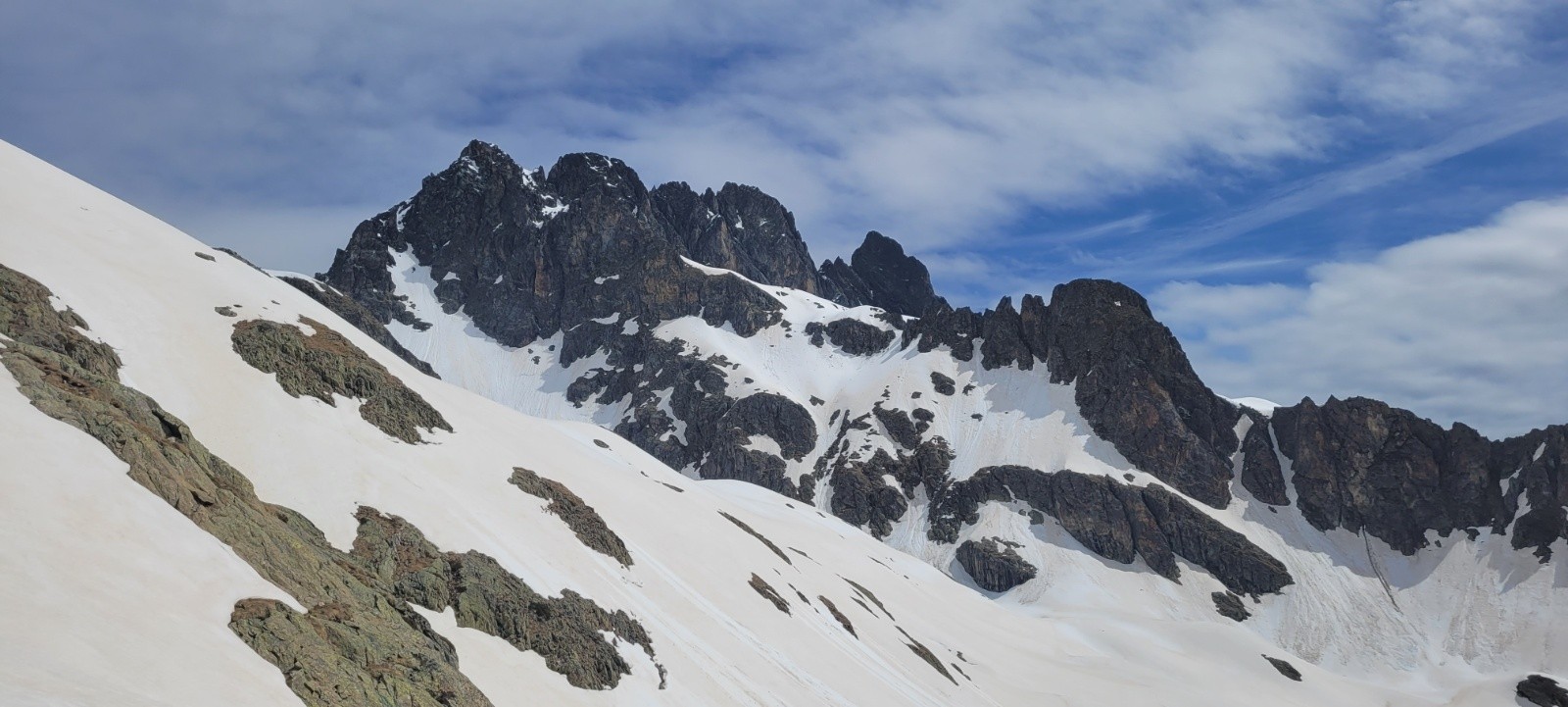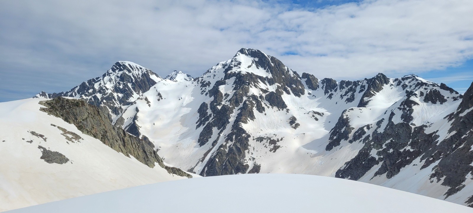 S'ensuit une remontée exténuante vers le Col de Buyant. J'avance comme une limace dans cette neige lourde qui s'effondre, le tout avec une chaleur exténuante... Compte tenu de mon état et de l'horaire, on zappe le sommet du Rocher Blanc. S'ensuit une belle déception avec une neige bien lourde et bien collante déjà en NE sur la descente du Rocher Blanc. On n'a rien raté... Je me demande ce qui est le plus fatigant dans ces conditions, la montée ou la descente?