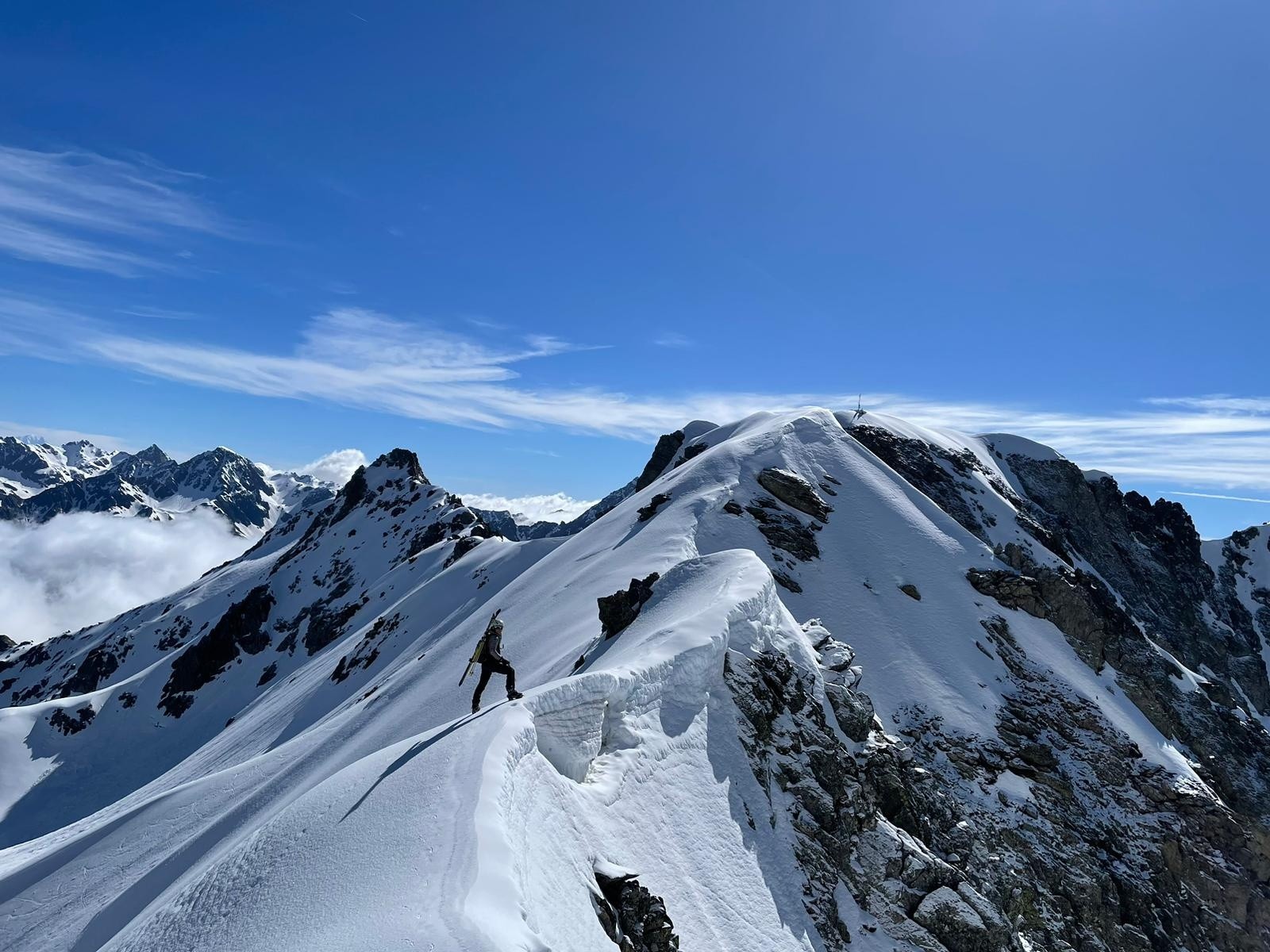 Conditions pour le ski : excellent regel en face nord, on enfonçait à peine les pointes des crampons, face est, regel moins bon. Du coup descente de la Belle Etoile vers les lacs des 7 laux vraiment médiocre sauf à trouver les bonnes contre-pentes, Belle Etoile face sud couloir en neige dure ensuite tout bon jusqu'à l'Aigleton. !!! Attention!!! Énorme rimaye en bas du couloir sud de la Belle Étoile que l'on a pu franchir par un étroit pont de neige car la neige était encore dure. Ça risque de ne pas durer...