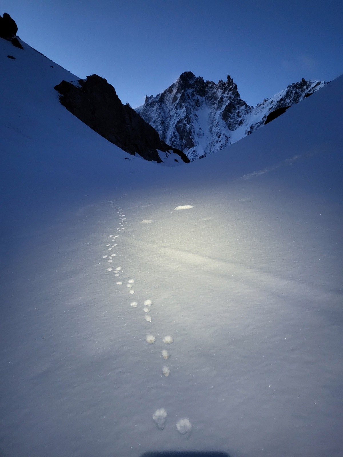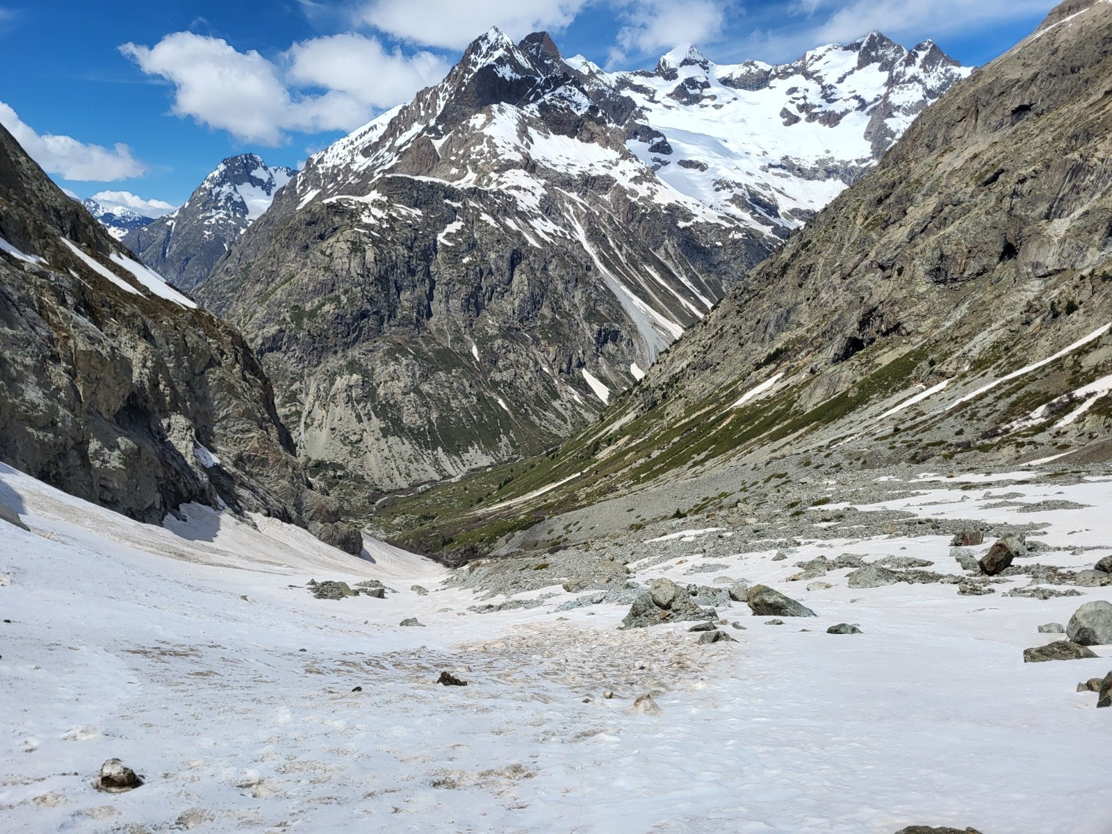 Horaires : Départ à 3h30, stop à 10h30 à 3700m Mon rythme trop lent me fait abdiquer sous la tant convoitée Barre des Ecrins pour pouvoir franchir le col des Ecrins avant midi.