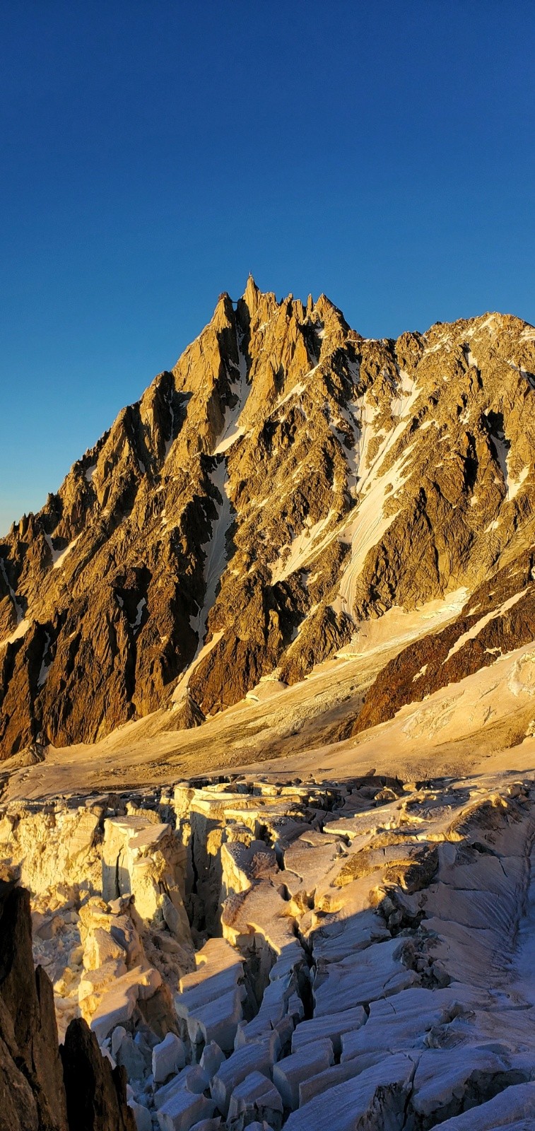 Monté au Grands Mulets depuis le plan de l'Aiguille par la jonction. Le passage se fait toujours très bien par le bas. Arrivé aux Grands Mulets juste pour le repas et un magnifique couché de soleil.