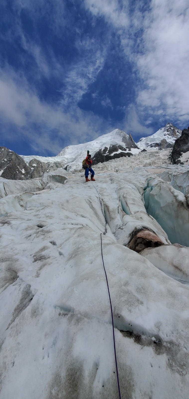 Neige fraîche et travaillée par le vent au dessus de 3600m. Dure le matin et transfo la journée plus bas