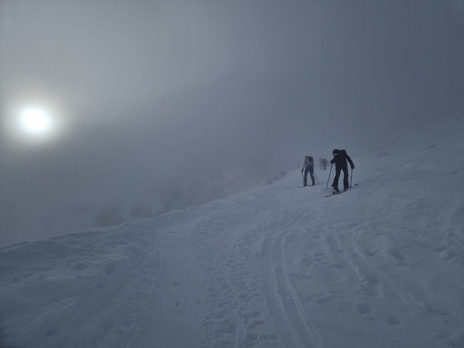 Le début de la montée dans le brouillard (dehors et dans les caboches), ça s'ouvre et on a notre second souffle (ou pas) pour monter au col de ce brave Montartier. Et oui, c'est la reprise et c'est autre chose que de gambader en trail sur les crêtes.