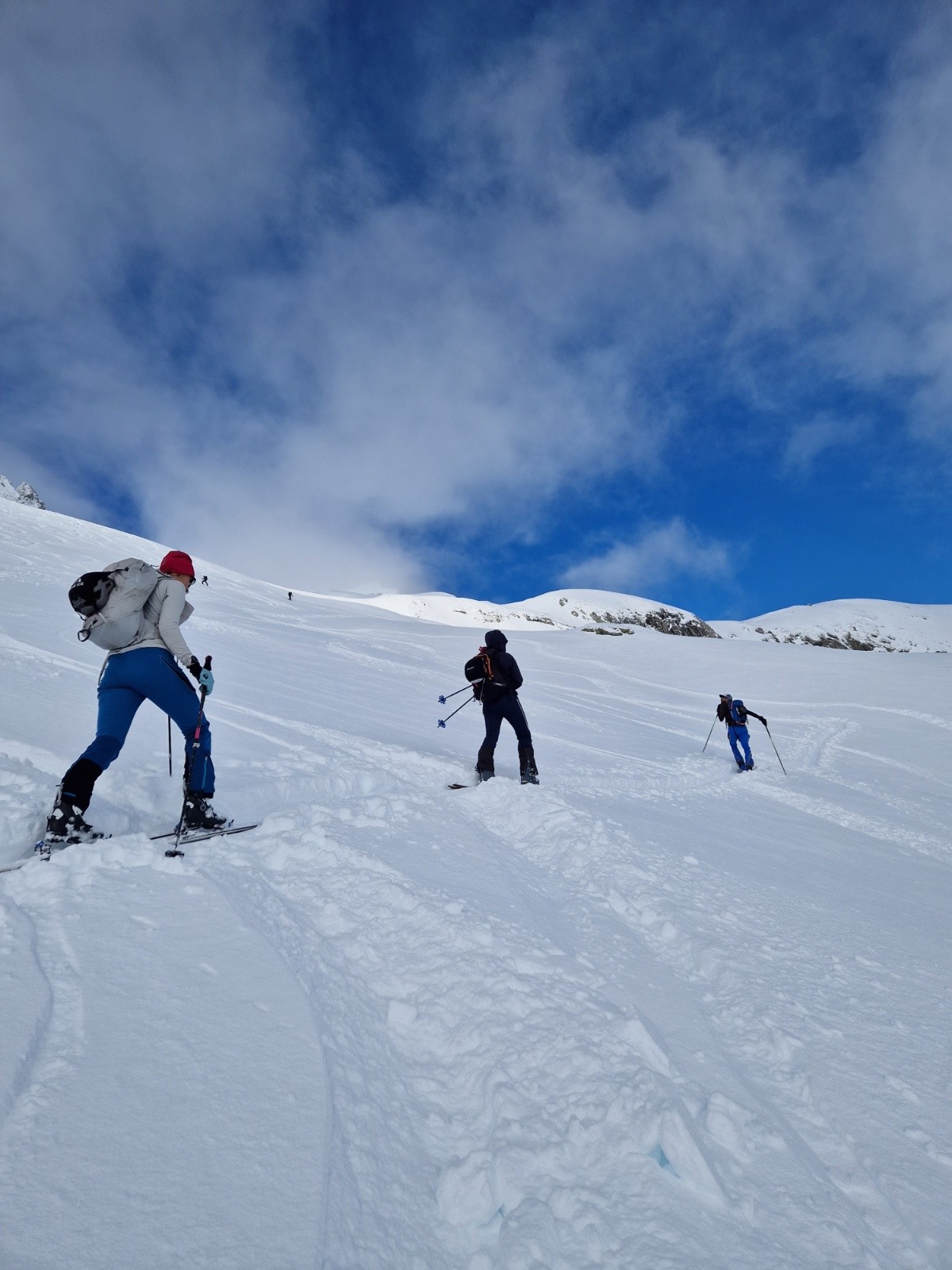 Conditions pour le ski : Bonnes au dessus de 2000. En dessous, faut bien rester sur le sentier d'été (tracé et même presque damé) pour éviter les requins sournois.