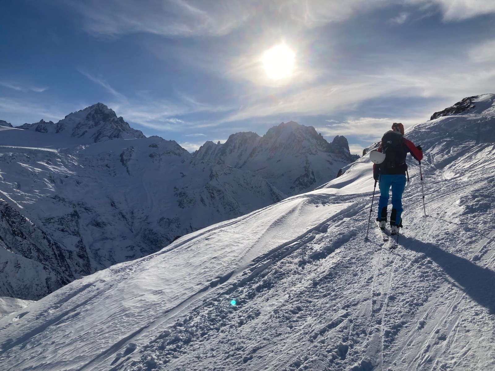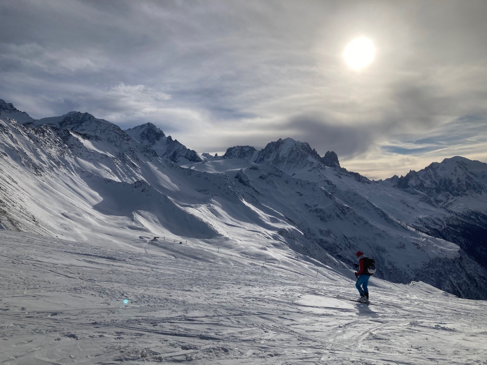 Itinéraire suivi : Parking du Tour -> Aiguillette des Posettes par Jorette et les Ardoisières -> descente sur Téléski du Plan des Reines -> Tête de Balme -> Le Tour par les pistes