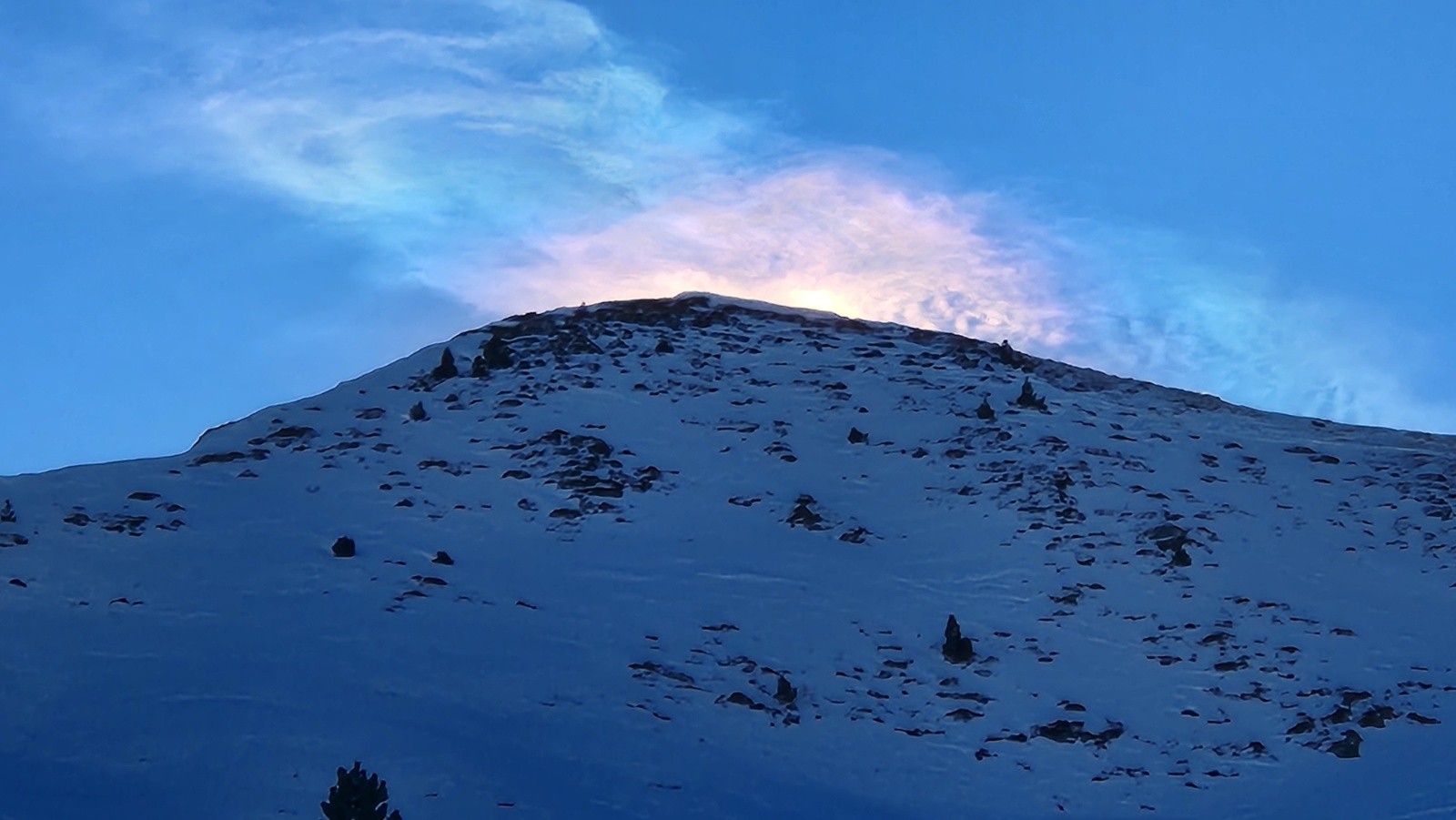 Conditions pour le ski : Avec le foehn qui a soufflé toute la nuit trés mauvais regel en bas . L'humidification a même gagné tous les versants Nord qui étaient encore froid et poudreux à l'abri du vent hier. Du coup neige récente humide et lourde voir tres lourde jusqu'à 1900/2000m. Au dessus il y avait une croute de regel cassante la plupart du temps . Dure dans les coins les densifié par le vent.