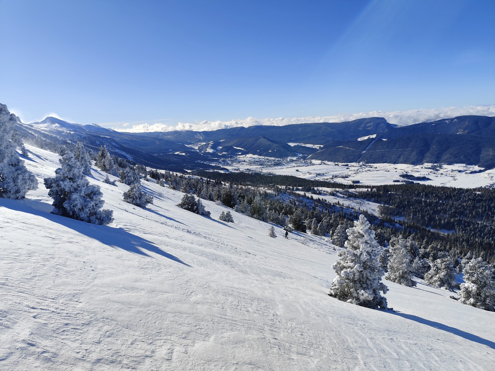 Conditions pour le ski : très hétérogène selon les zones qui ont pris le vent ou non, jusqu'à 60cm de fraîche par endroits, il fallait viser les bonnes micro expositions et/ou les zones bien arborées.