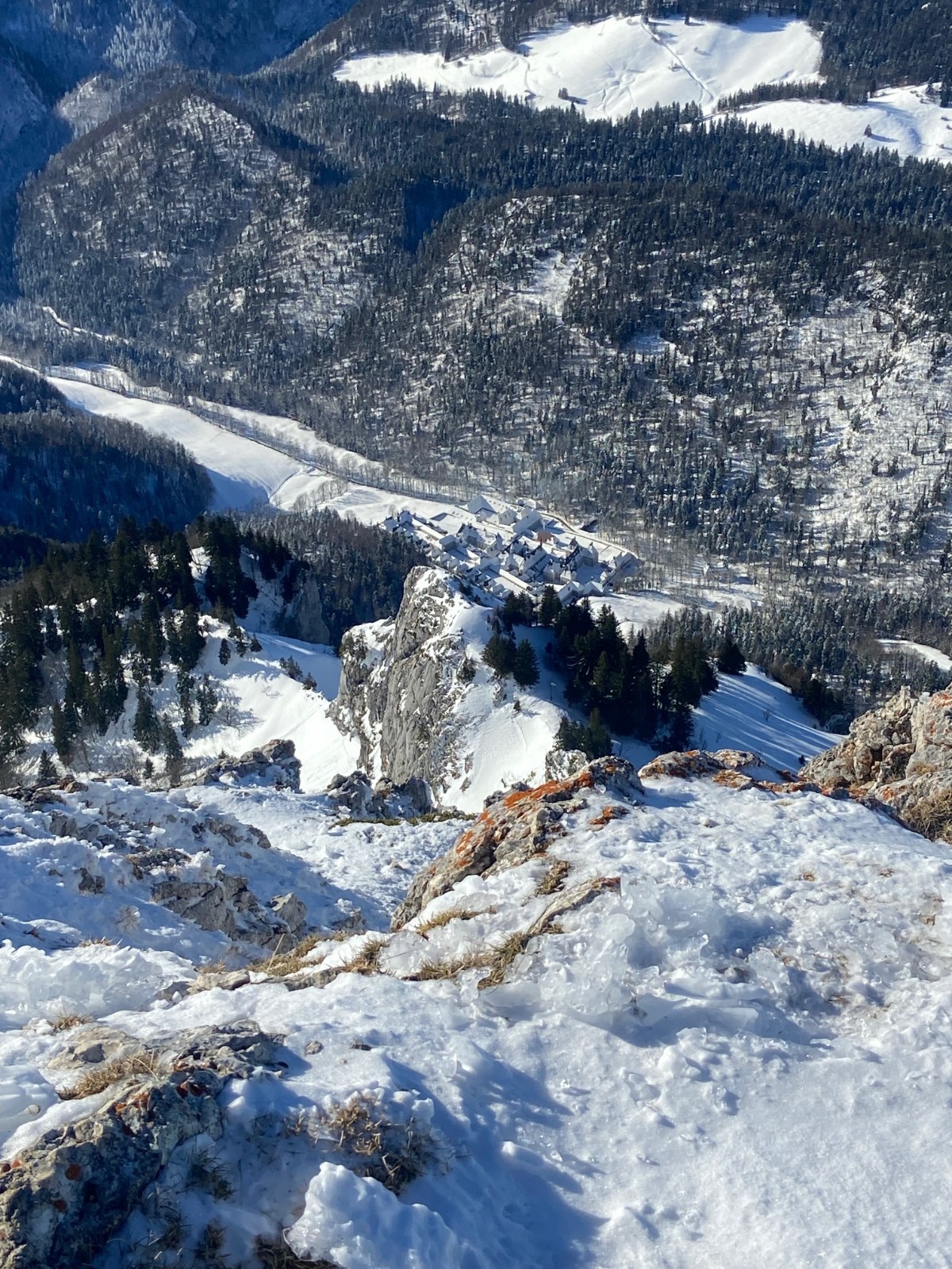 Conditions nivo et activité avalancheuse : Rien vu bouger, pas de traces de coulées. Le vent a beaucoup travaillé la neige ; beaucoup de zones compactées dès qu’on sort de la forêt.