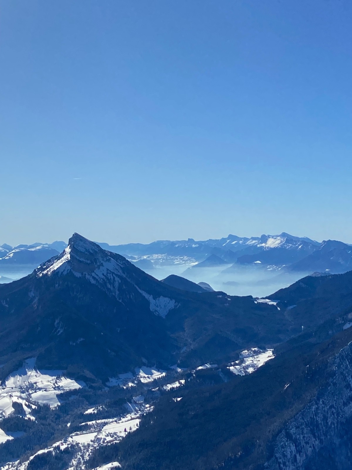 Magnifique journée en Chartreuse sur une suggestion du Guide Polo. Bon, c’est vrai qu’on est pas les seuls à avoir eu l’idée d’y aller, mais il y a de la place … une dizaine de voitures au parking, le début de la montée est enchanteur dans la forêt givrée, et on arrive rapidement au col de Lechaux , duquel on peut voir les différentes options du jour que nous allons finalement toutes visiter : Grand som puis Mauvernay et enfin Petit Som.