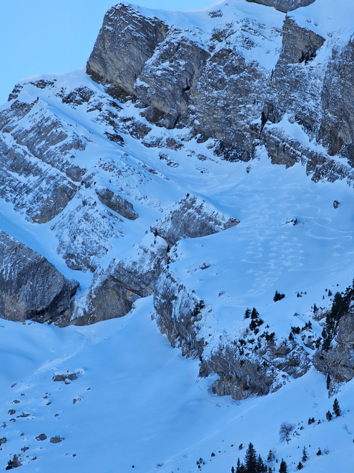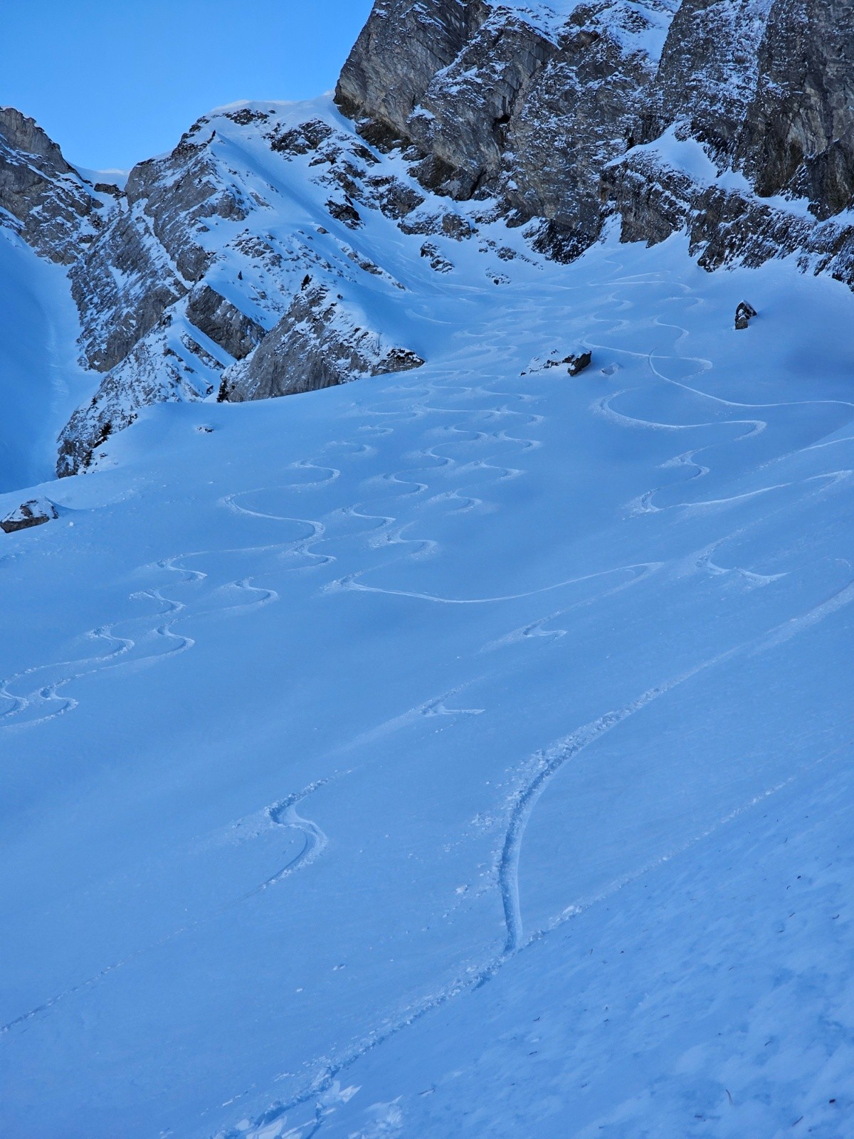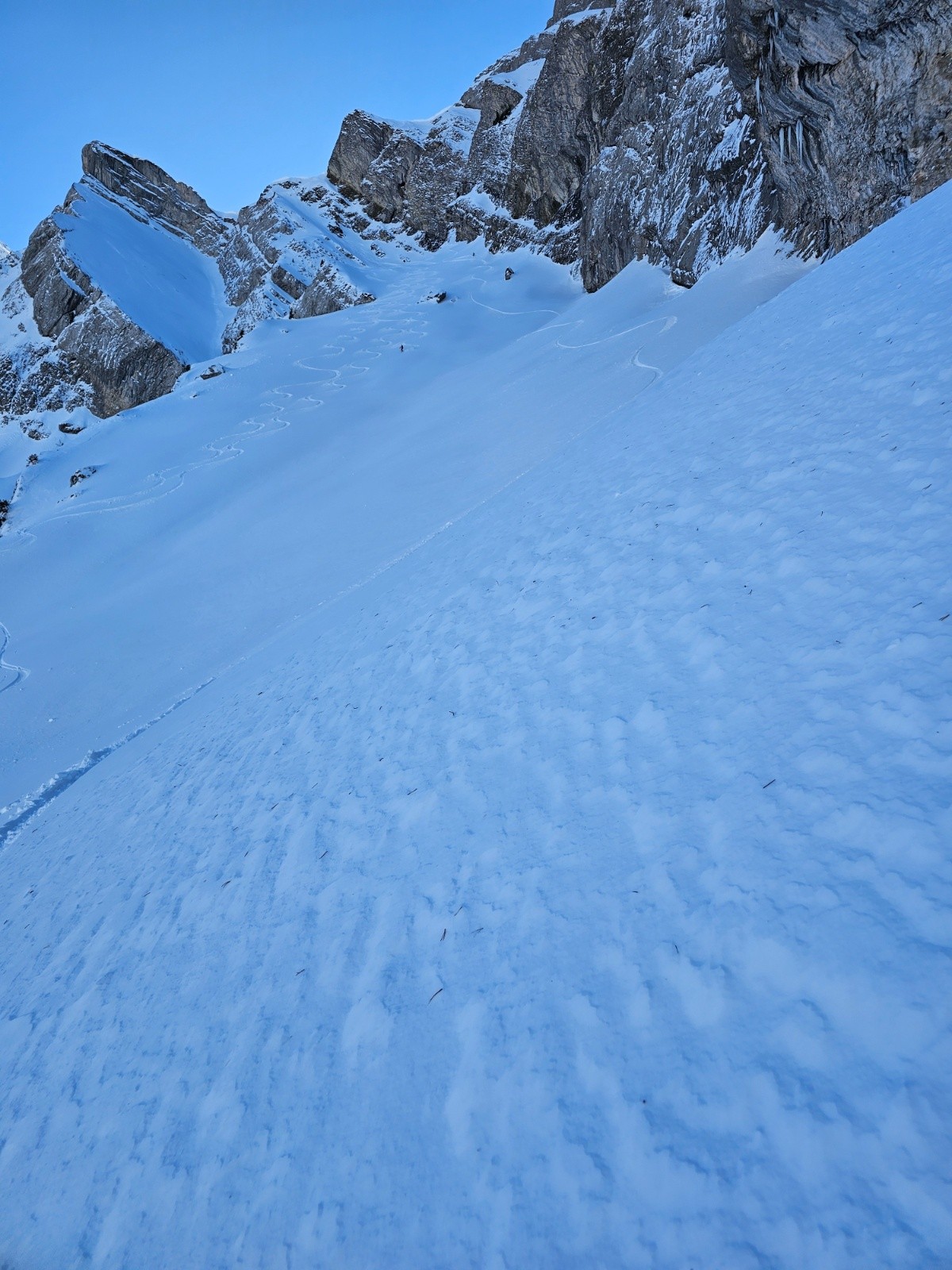 Une trace de la veille dans la marion mais à partir de la moitié elle était quasiment inexistante , tout le haut était en neige croûtée/compacte