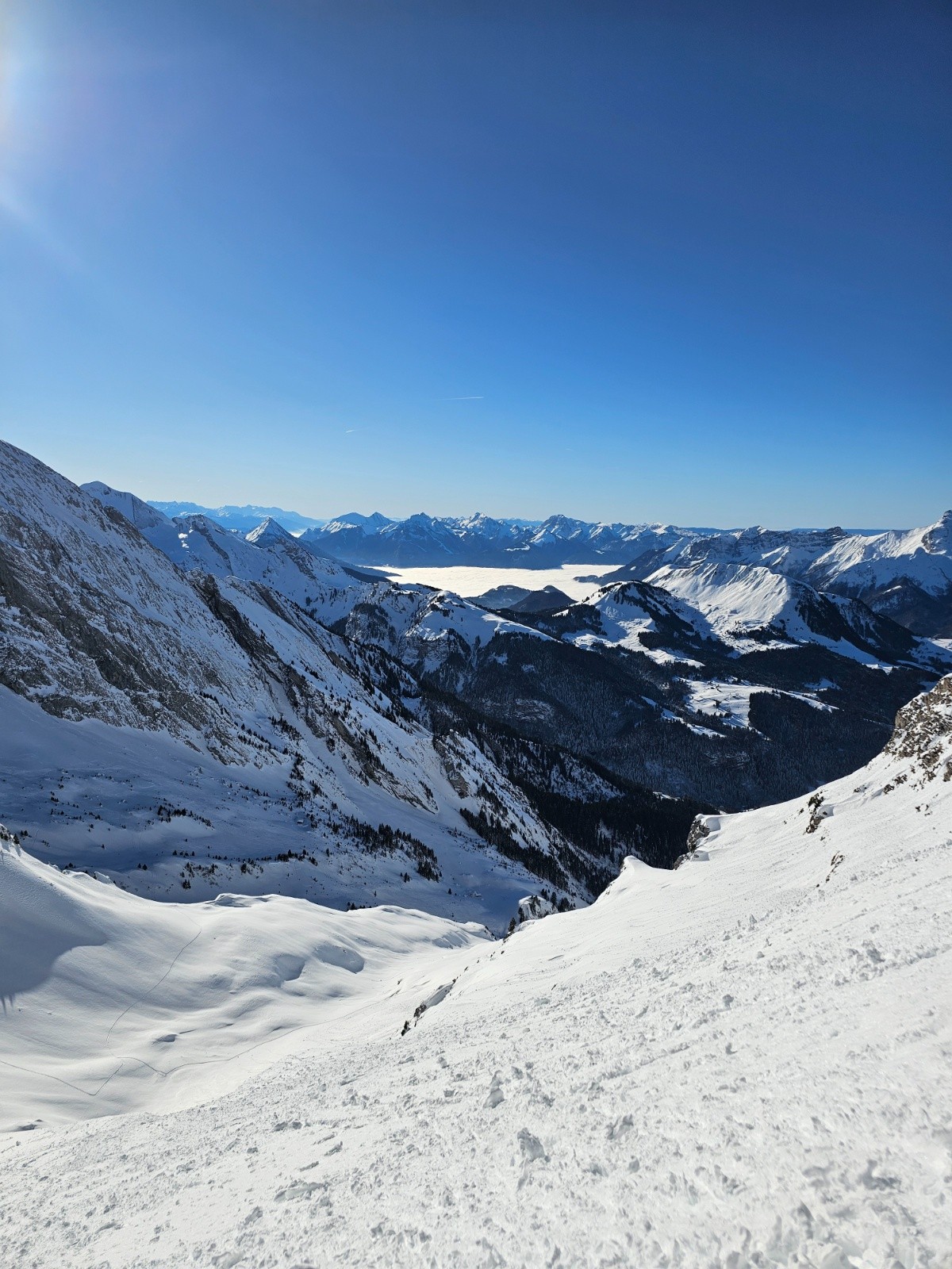 Blonnière W : poudreuse dans les contre-pentes NW et croûtée dans les contre-pentes SW qui prennent le soleil