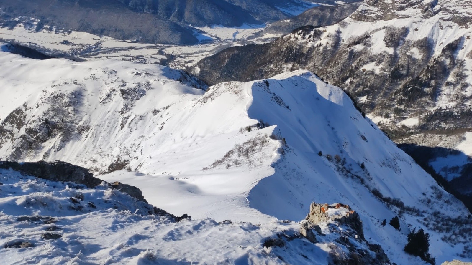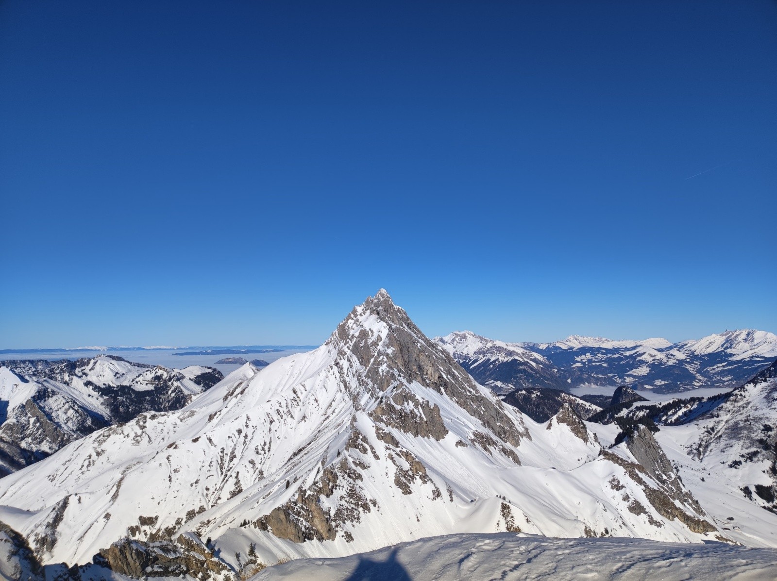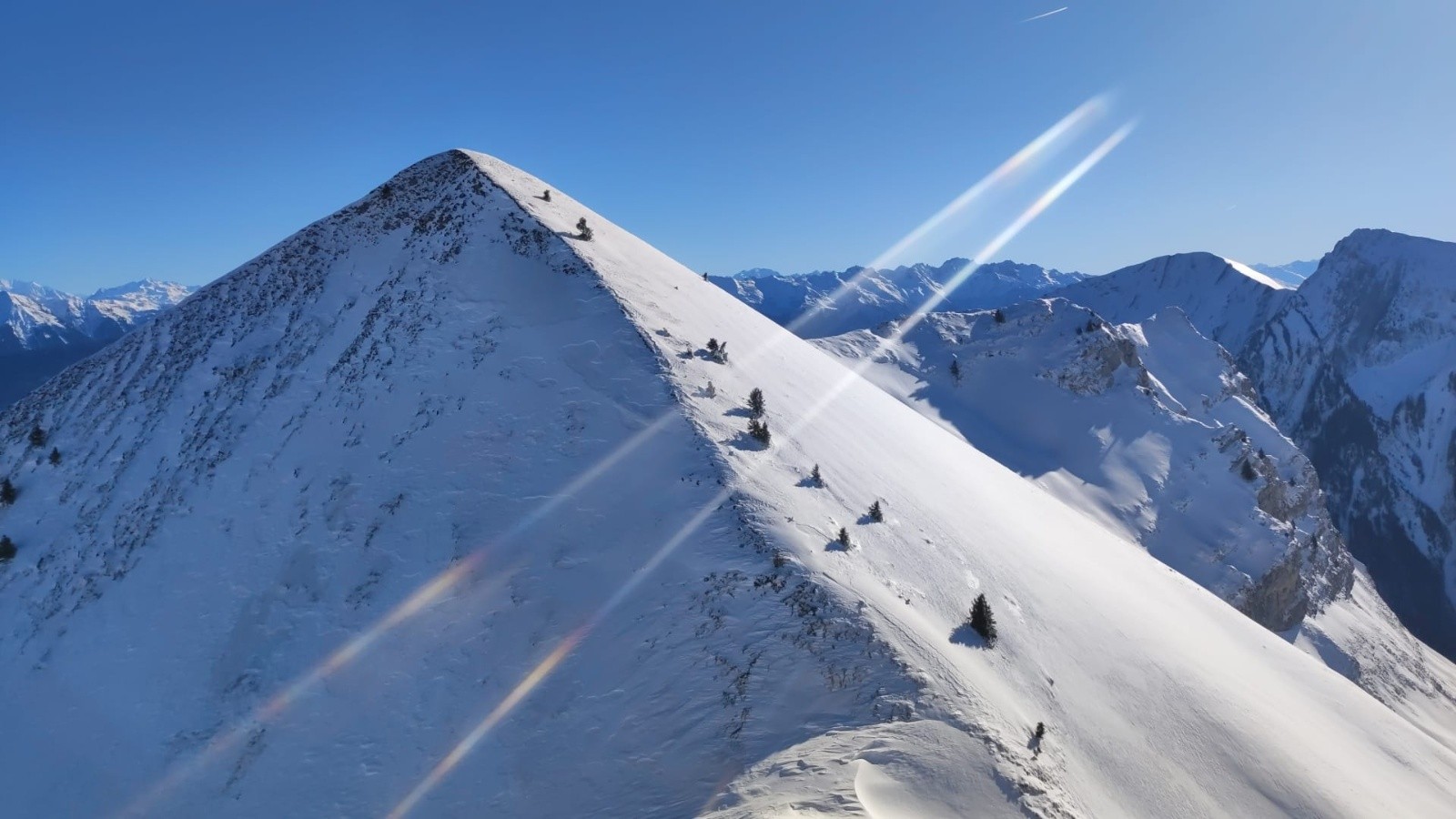 Superbe vue au sommet notamment sur le mont de la coche à portée de main ! J'enchaine donc toujours à pied, car la crête est ici aussi "dégarnie". Ça passe très bien, même pas besoin des crampons !