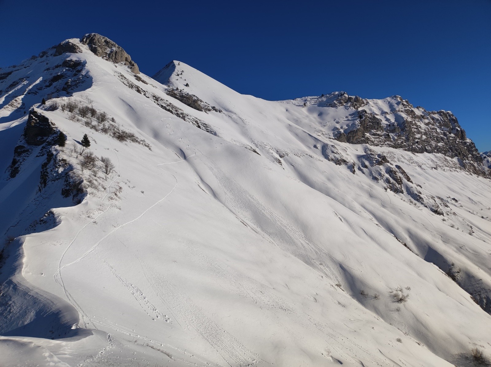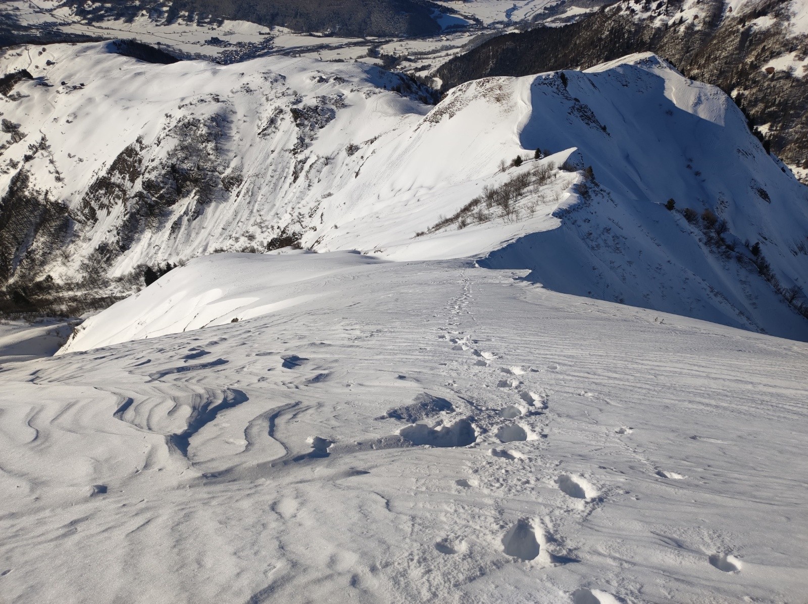 Conditions nivo et activité avalancheuse : RAS, la neige s'humidifie en surface est reste poudreuse en dessous. Purge classique sous les barre rocheuse