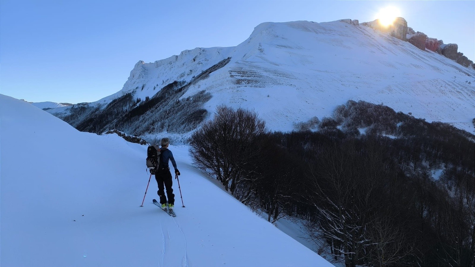 Conditions pour le ski : un peu de tout sur le Roc. Gelée/soufflée dans la montée sur l'arête NO et sur le plateau. Poudreuse tassée dans la face E et la bande dans la face ouest. Poudreuse humide dans la forêt.