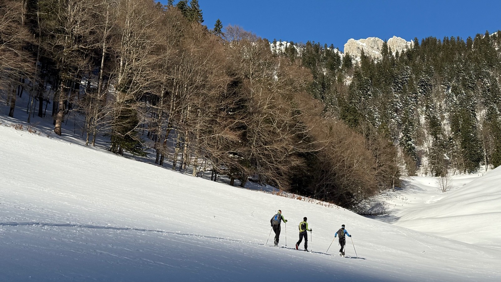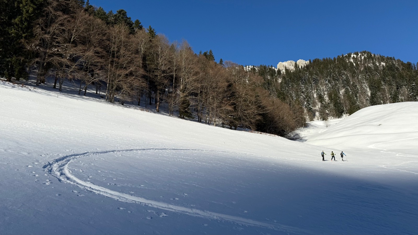 Conditions pour le ski : de tout, mais plutôt du très correcte encore, surtout en forêt à l’ombre ! Pluie sous les arbres au retour vers 13h
