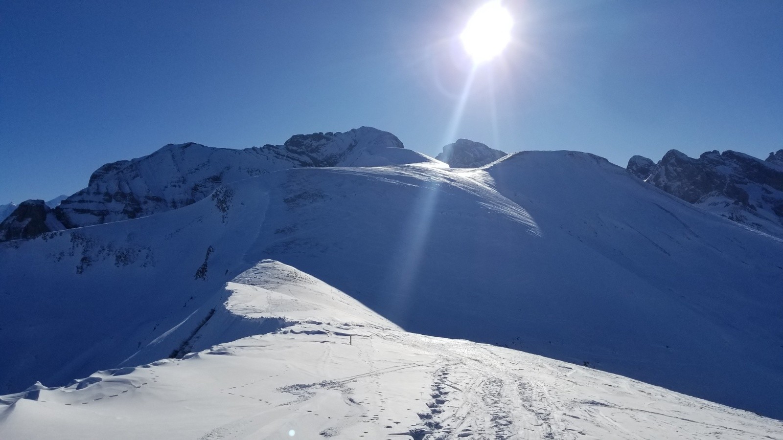 Conditions nivo et activité avalancheuse : rien vu mais c'est bien pelé sur la partie sommitale de la Pointe des Arbennes et la Tête du Château a l'air franchement carton!
