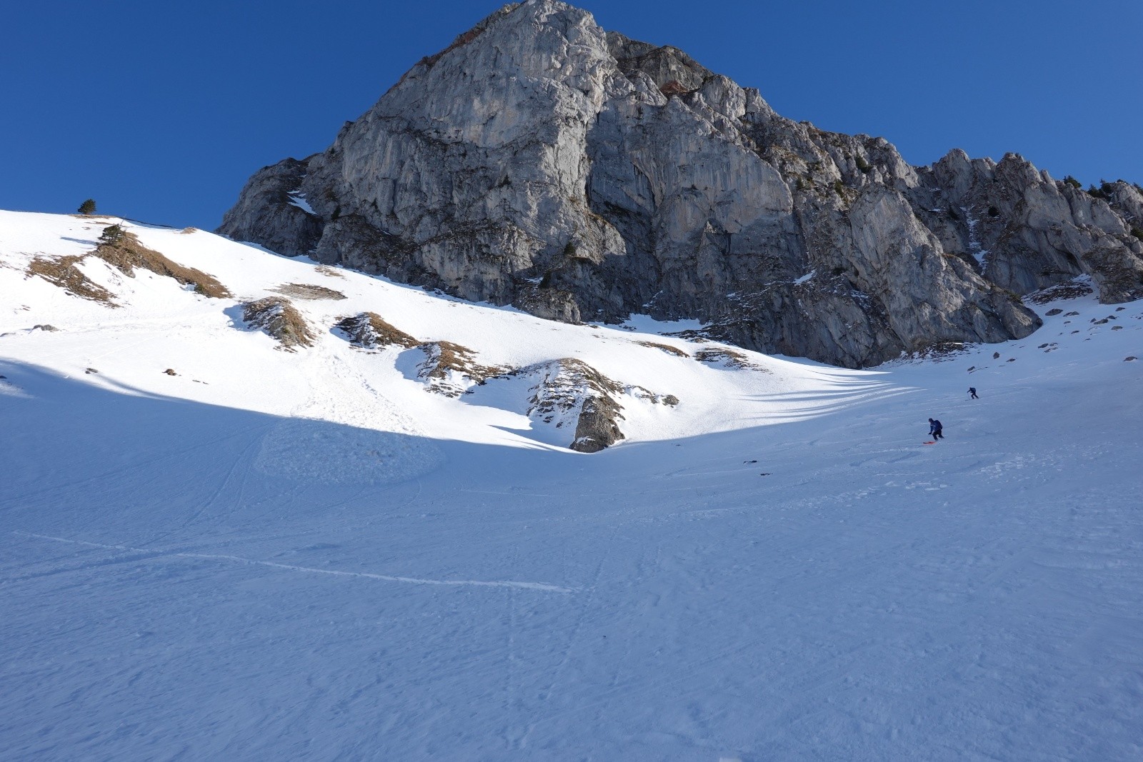 Pas de Chaudin bien tracé mais quand même expo, mieux avec des crampons mais ca passe sans