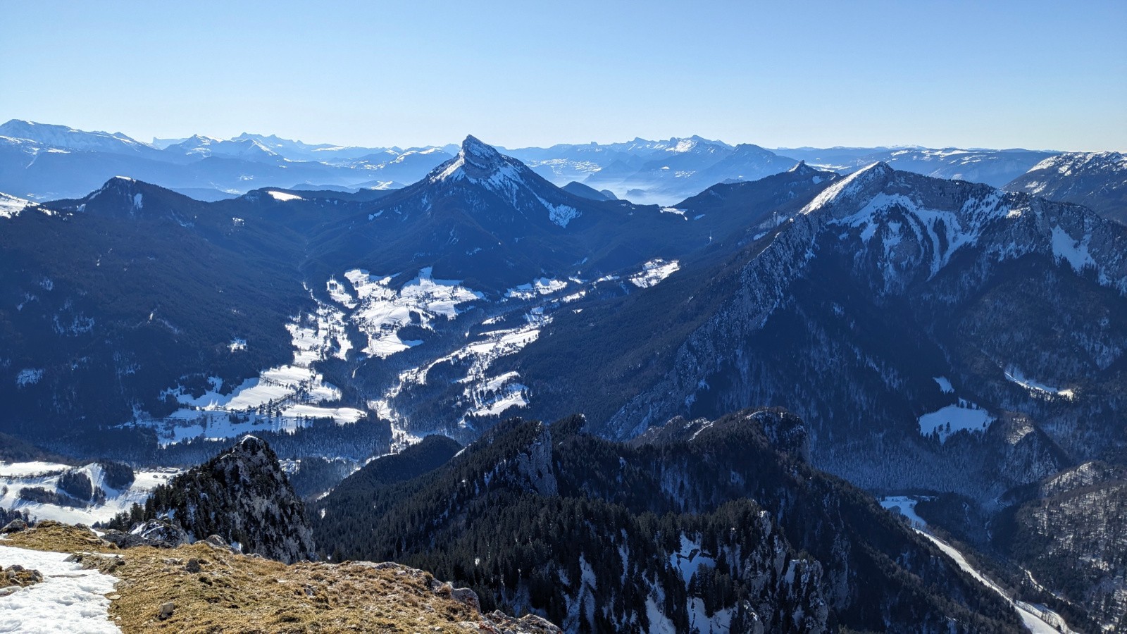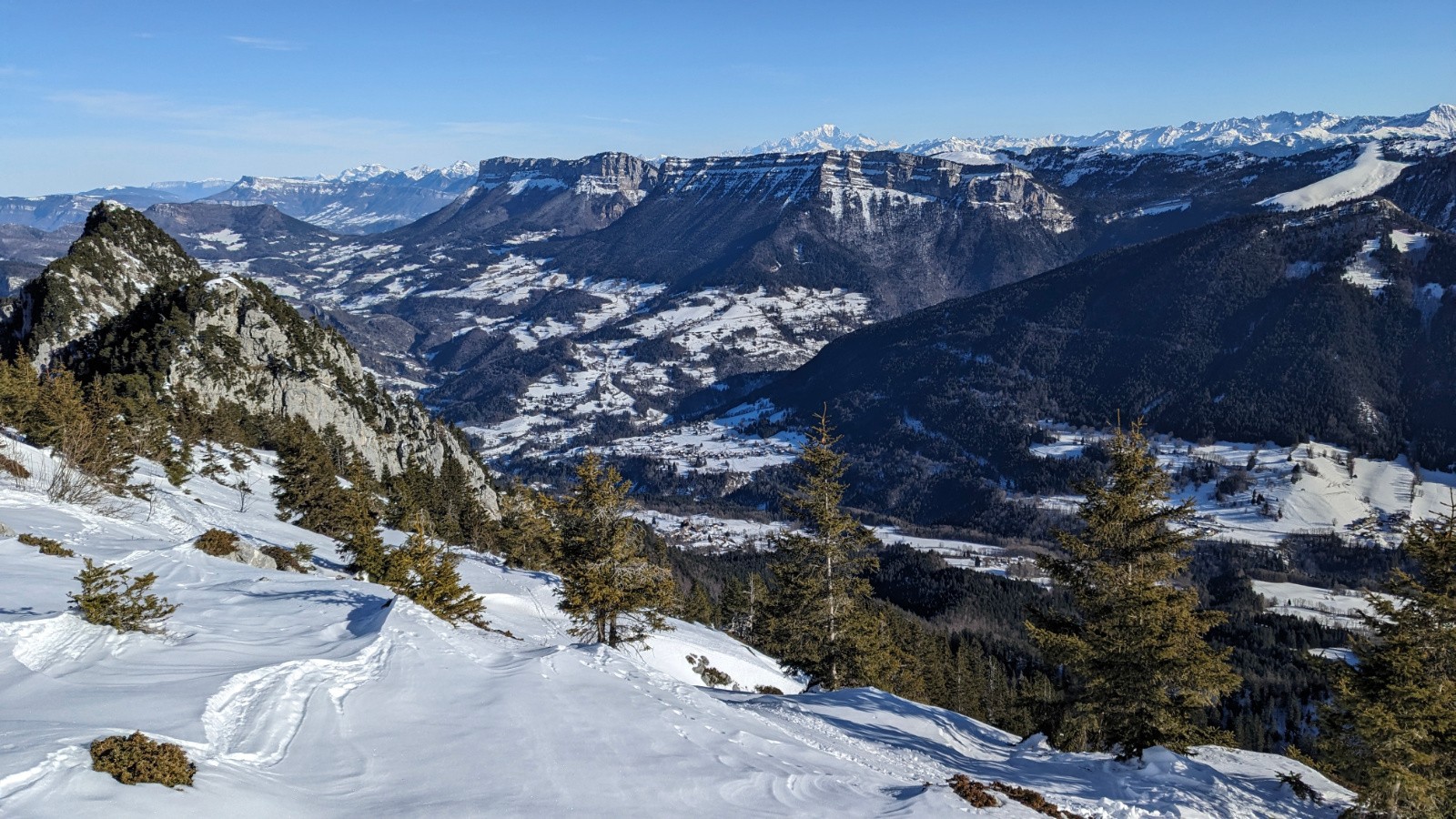 Conditions pour le ski : toute neige... vieille poudre en sous bois abrité, dure sans dégel exposée au soleil, décapée sur les sommets. Dès le col Léchaud, une bonne petite bise pas trop froide nous accompagne sur la suite du parcours, empêchant fonte ou dégel des zones ensoleillées. La skiabilite varie entre bonne en sous bois, à correcte dans les zones ensoleillées.